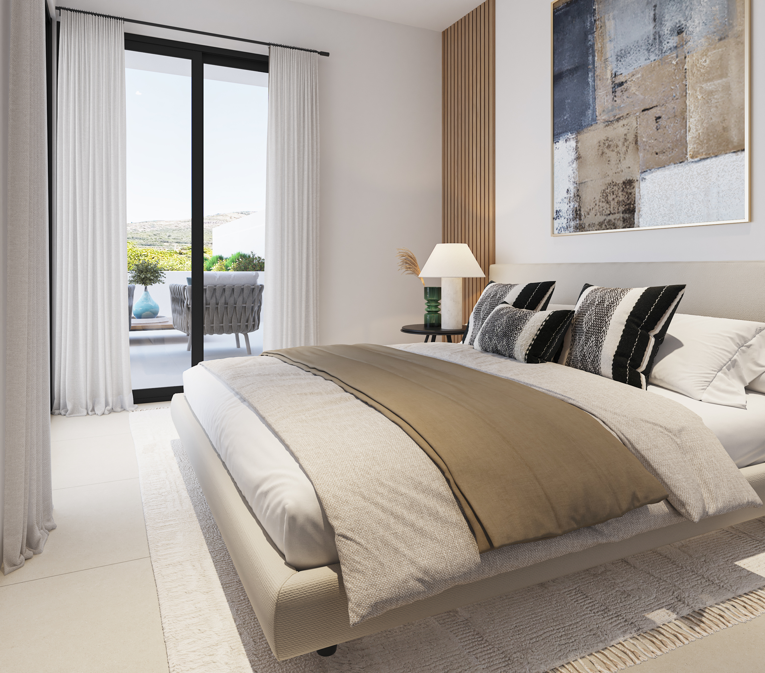 EJedes Wohnhaus weist architektonische Elemente auf, die die Helligkeit und die Verbindung mit dem Außenbereich verbessern: große Fenster offene Küchen und Grundrisse die den Bewohnern die Südterrassen erlauben.