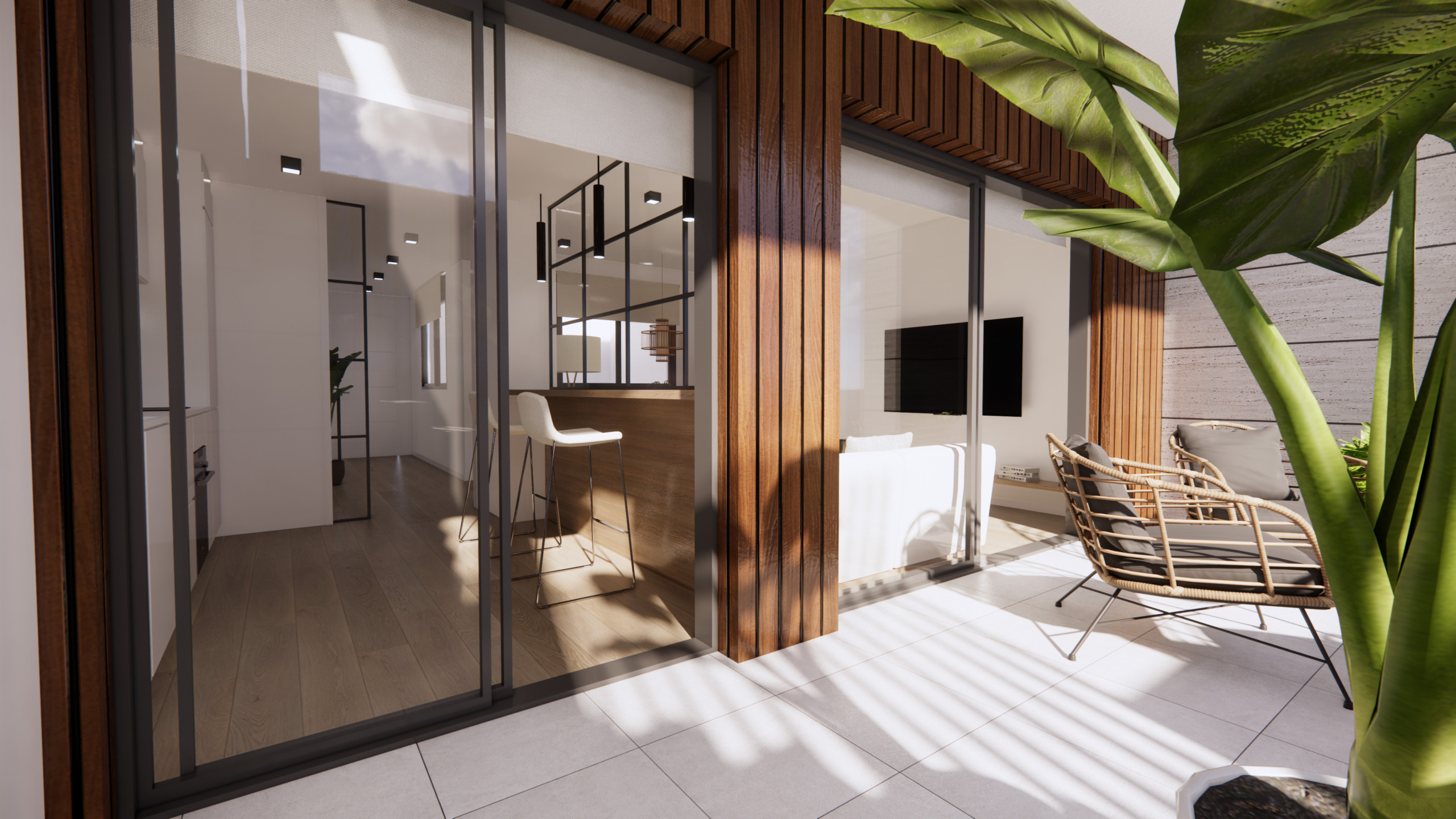 Gebäude bestehend aus Duplex-Wohnungen, Erdgeschoss oder Dachgeschoss. Sie haben 3 Schlafzimmer und 2 Bäder.