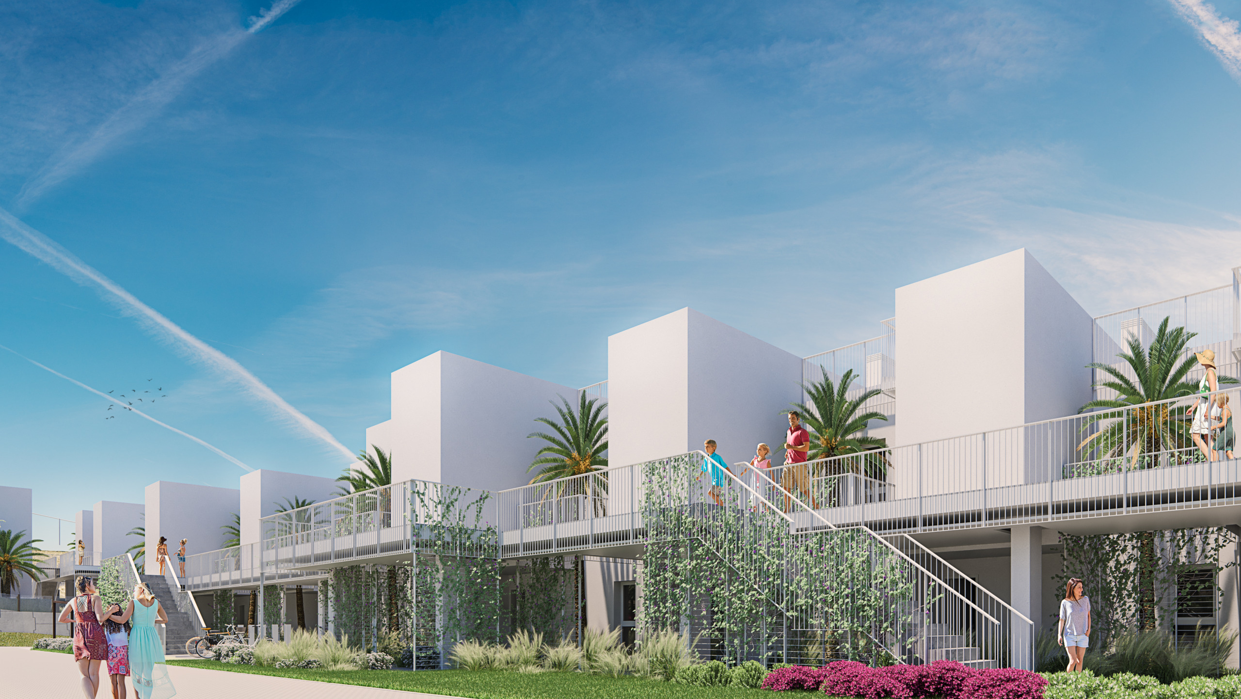 Spektakuläre Wohnungen mit 2, 3 und 4 Zimmern in zwei Ausführungen: Dachgeschoss oder Erdgeschoss. Die Wohnungen im Dachgeschoss verfügen über große Terrassen und ein Solarium, während die Wohnungen im Erdgeschoss über Terrassen und große Gärten verfügen. Die privaten Gärten bestehen aus Naturrasen, dessen Pflege in den Gemeinschaftskosten inbegriffen ist, und werden durch Zäune und Zypressenhecken abgegrenzt.