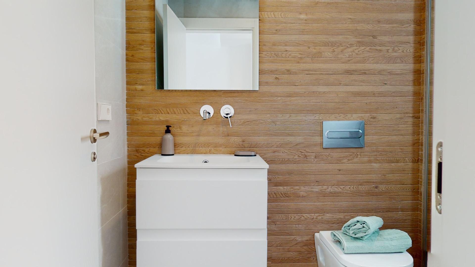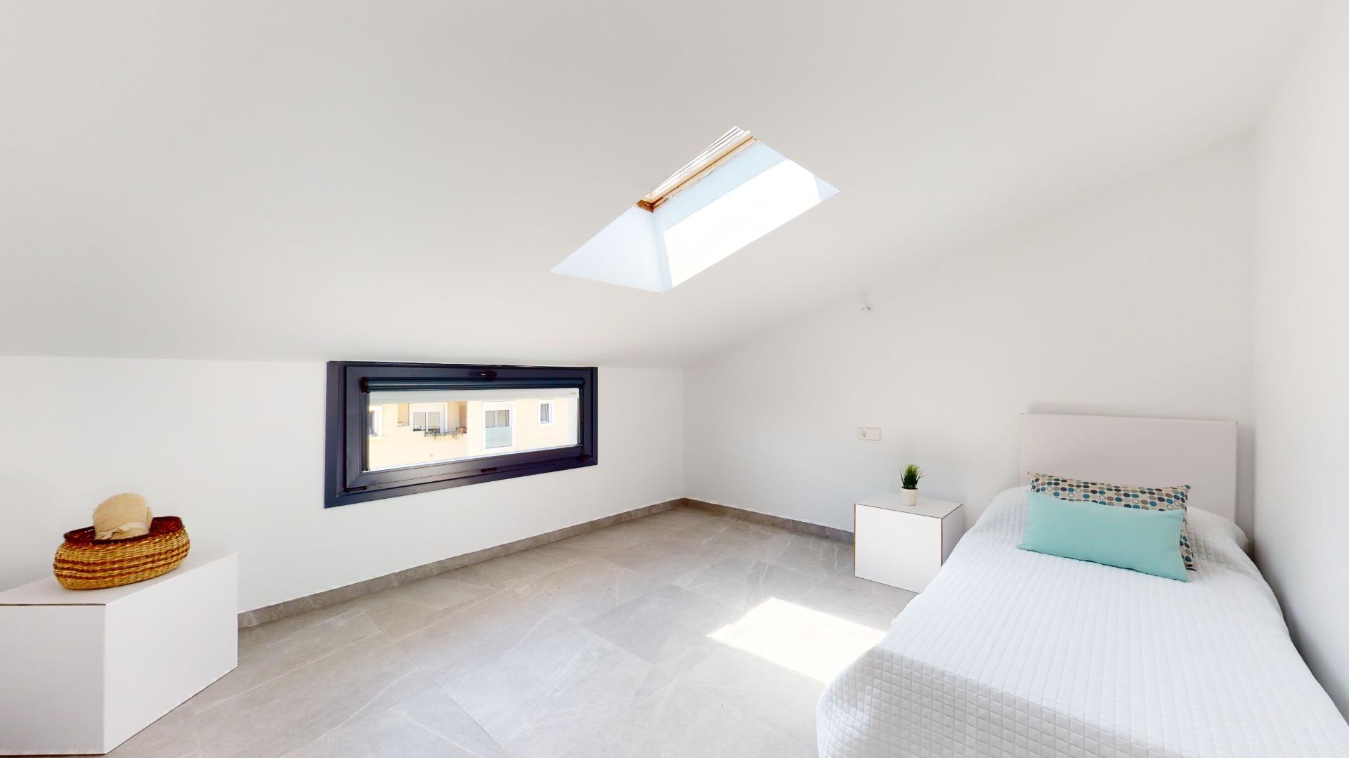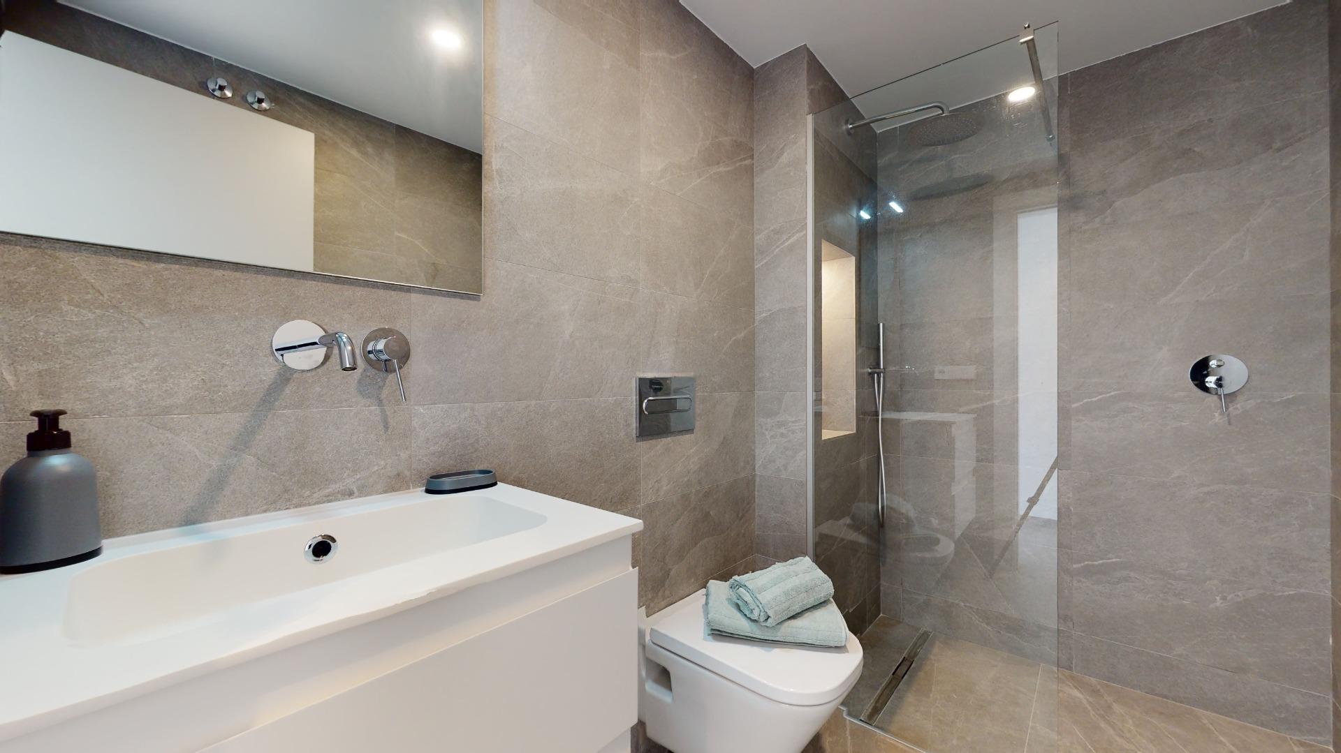 Die Schlafzimmer sind auf der ersten und zweiten Etage verteilt, sie sind geräumig und sonnig. Die Bäder sind im modernen Stil und Porzellan Materialien sind komplett mit Waschbecken, Schrank, Spiegel und Duschwand geliefert.