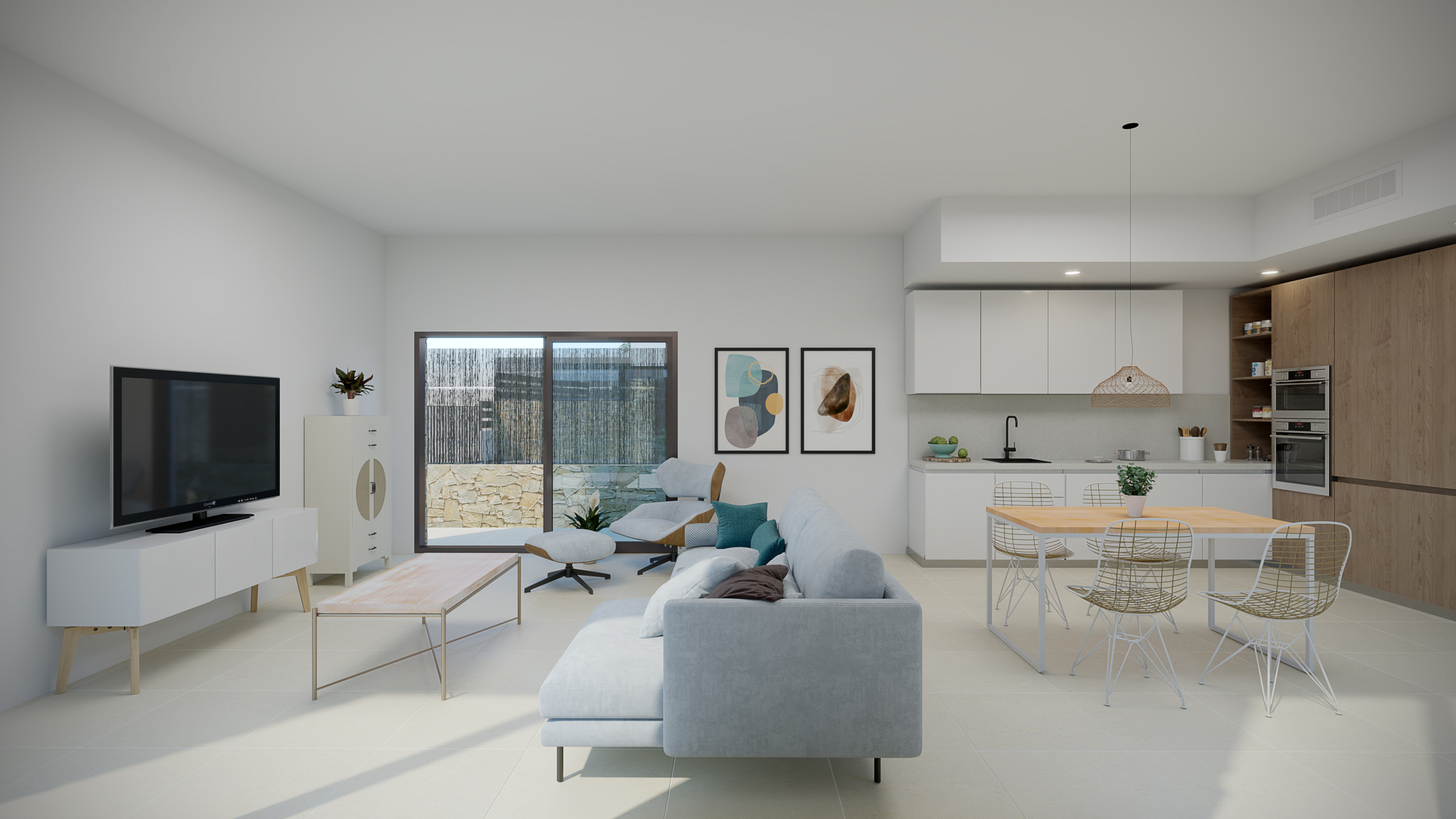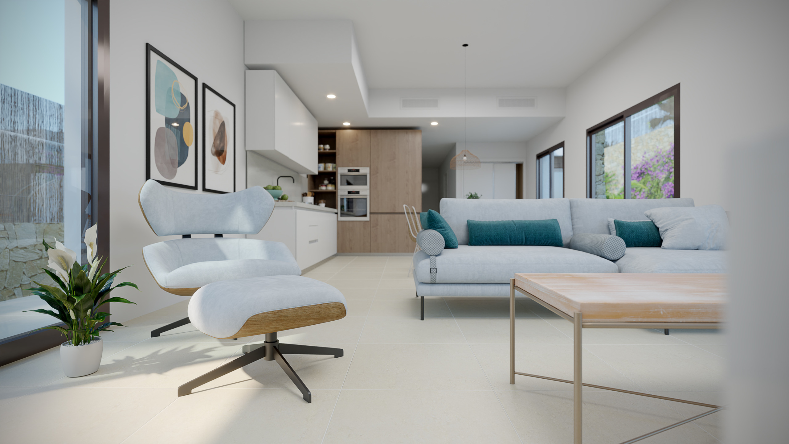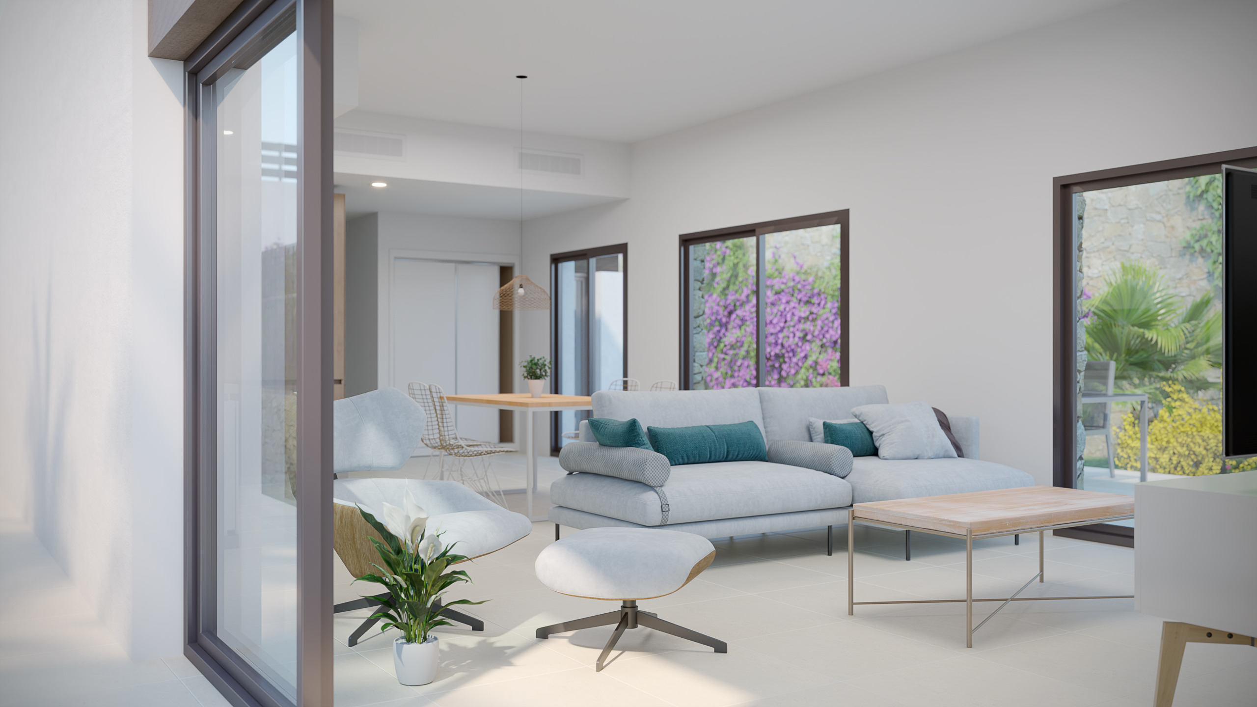 Sie sind so konzipiert, dass sie den ganzen Tag über von Licht profitieren, ohne jedoch die Privatsphäre zu vernachlässigen. Die Häuser sind auf ein oder zwei Etagen verteilt, je nach Design der Villa und verfügen über ein Wohnzimmer mit offener Küche, 3 Schlafzimmer und 2 Bäder.