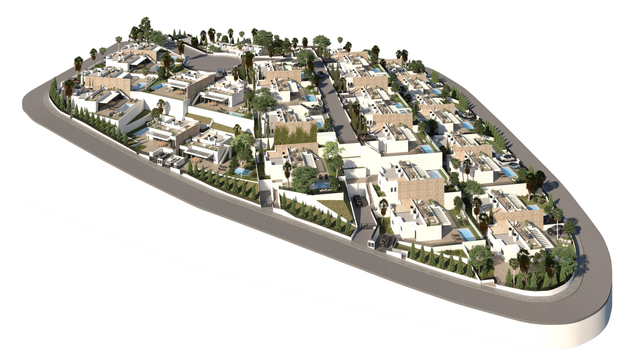 Die Villen verfügen über einen großen privaten Pool, einen privaten Gartenbereich mit Terrasse und einen privaten Parkplatz auf dem Grundstück.