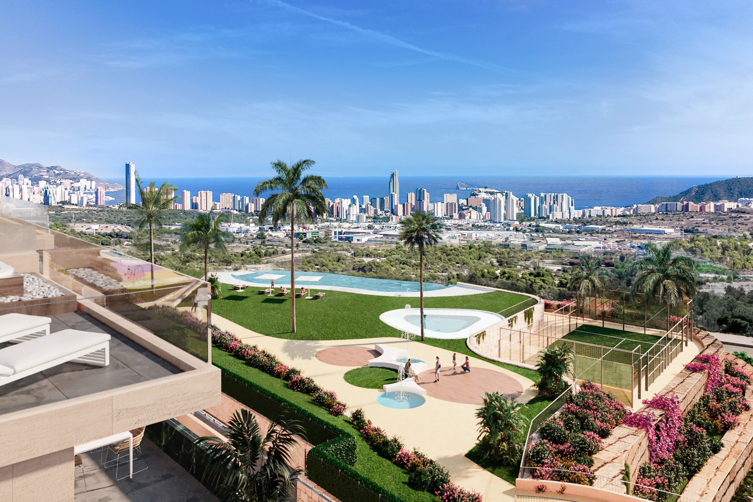 Die Wohnung befindet sich in unmittelbarer Nähe zu Stränden, Einkaufszentren, Supermärkten, Restaurants und Golfplätzen. Diese wunderbare Wohnanlage zwischen Finestrat und Benidorm bietet eine breite Palette von Dienstleistungen, darunter ein Schwimmbad für Erwachsene, ein Kinderbecken und ein beheiztes Winterbecken, einen Fitnessraum, eine finnische Sauna, Paddle-Tennisplätze, einen Kinderspielplatz und große grüne Gärten.