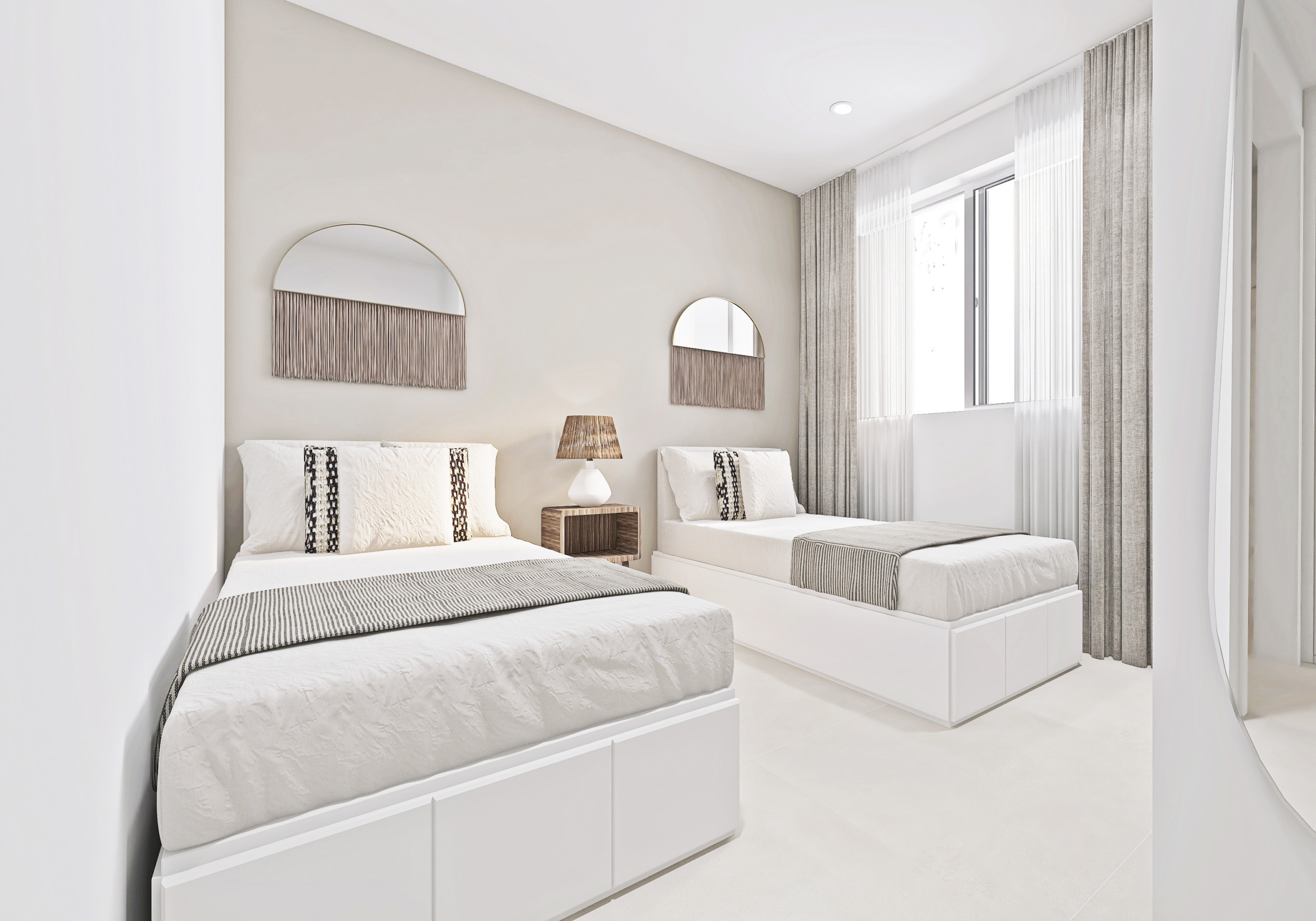 Aufgeteilt in 3 Schlafzimmer und 2 Bäder, mit Ausnahme einer einzigen Wohnung, die 2 Schlafzimmer und 2 Bäder hat.