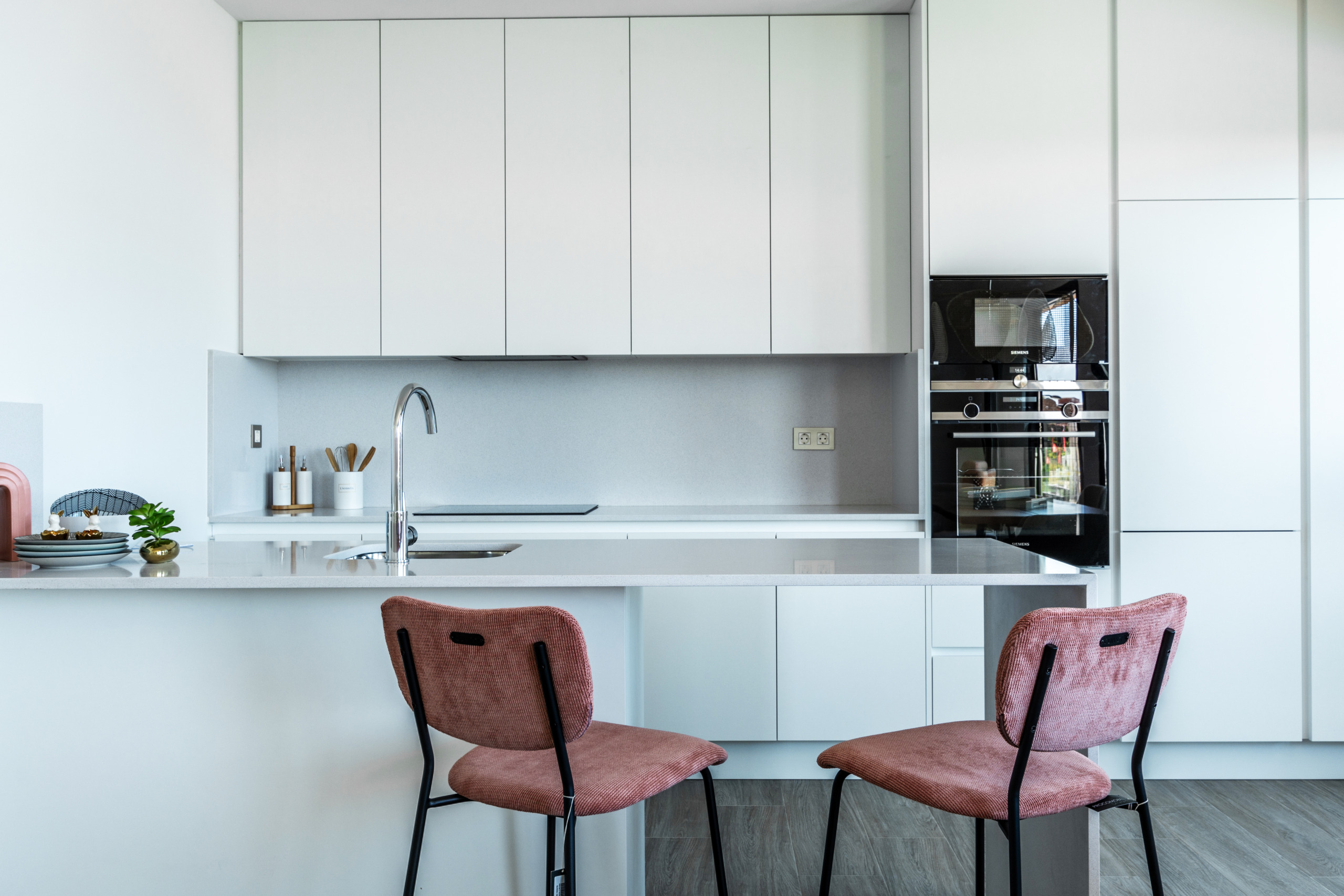 Es bietet ein helles Wohnzimmer, Küche mit hohen und niedrigen Möbel mit großen Fenstern und direktem Zugang zum Poolbereich oder Terrasse und Garten ausgestattet.