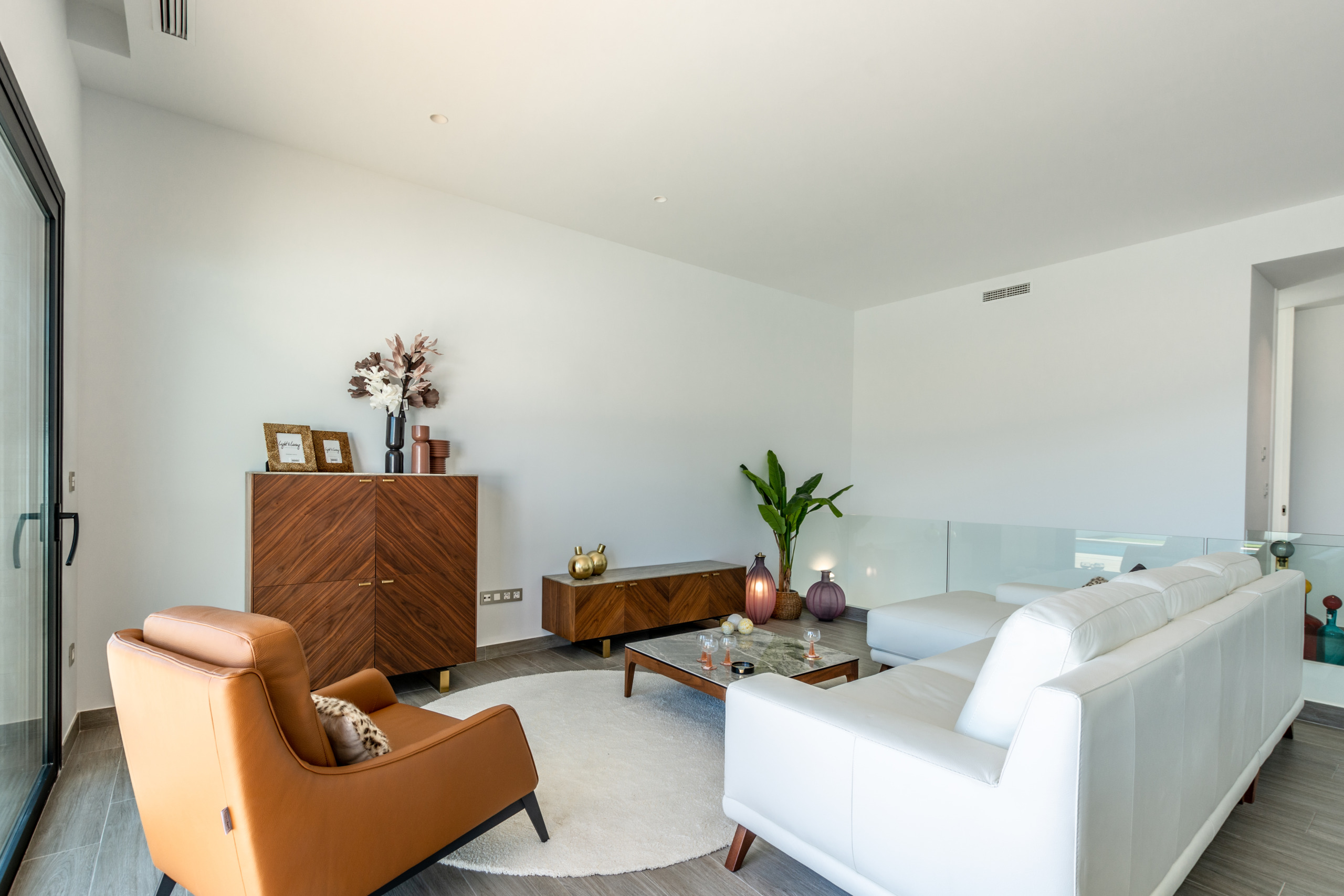 Die Villen verfügen über eine vorinstallierte Klimaanlage, Warmwasser durch eine Wärmepumpe (aerothermisches System), Klimaanlage im ganzen Haus, die Jalousien sind elektrisch.