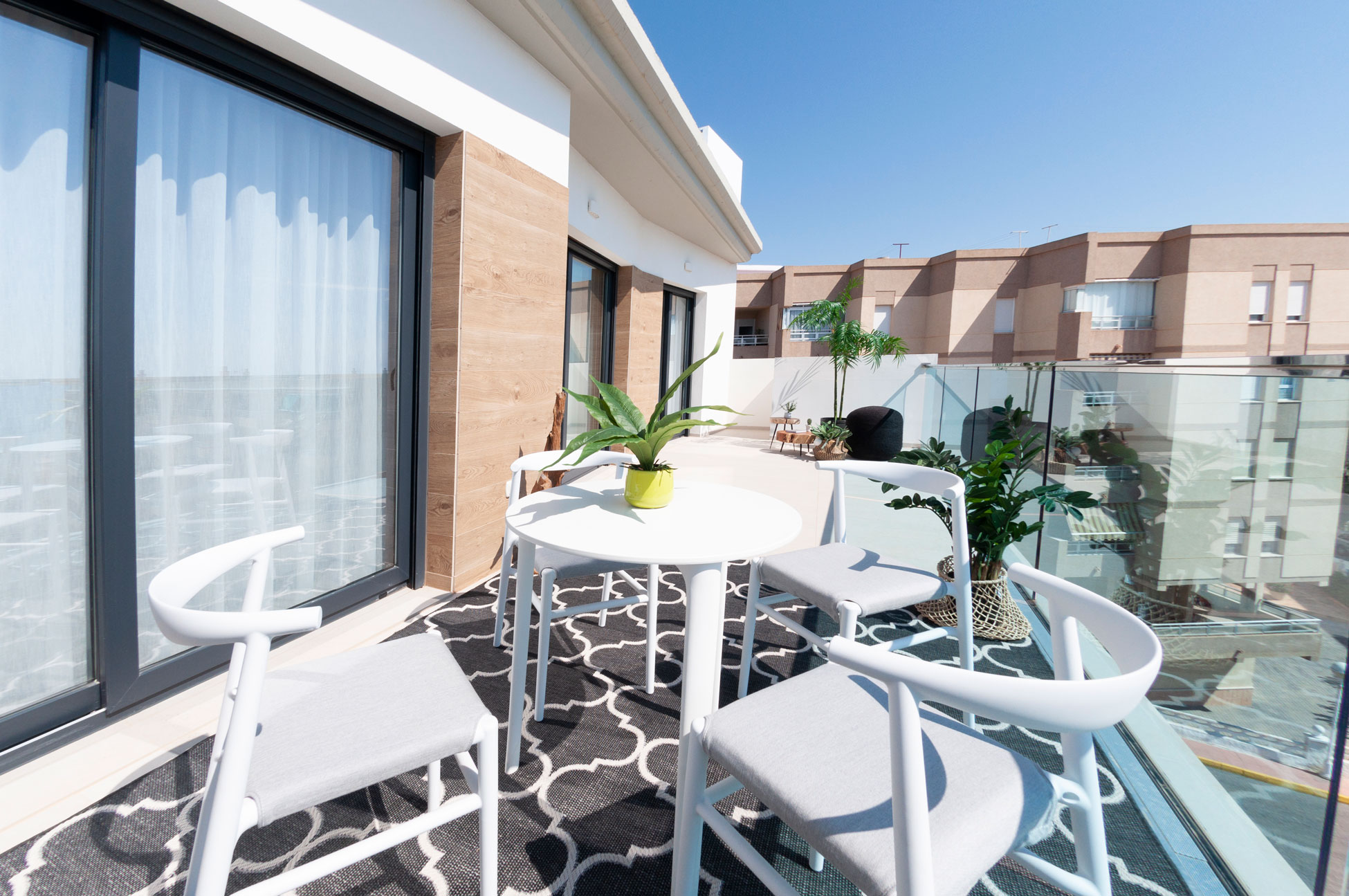 Wohnungen mit 3 Schlafzimmern und 2 Bädern mit einem modernen und hellen Layout. Alle Häuser haben Terrassen, um den Außenbereich zu genießen, und auch die Penthäuser haben große Solarien. Einige Erdgeschosse haben auch einen Garten.