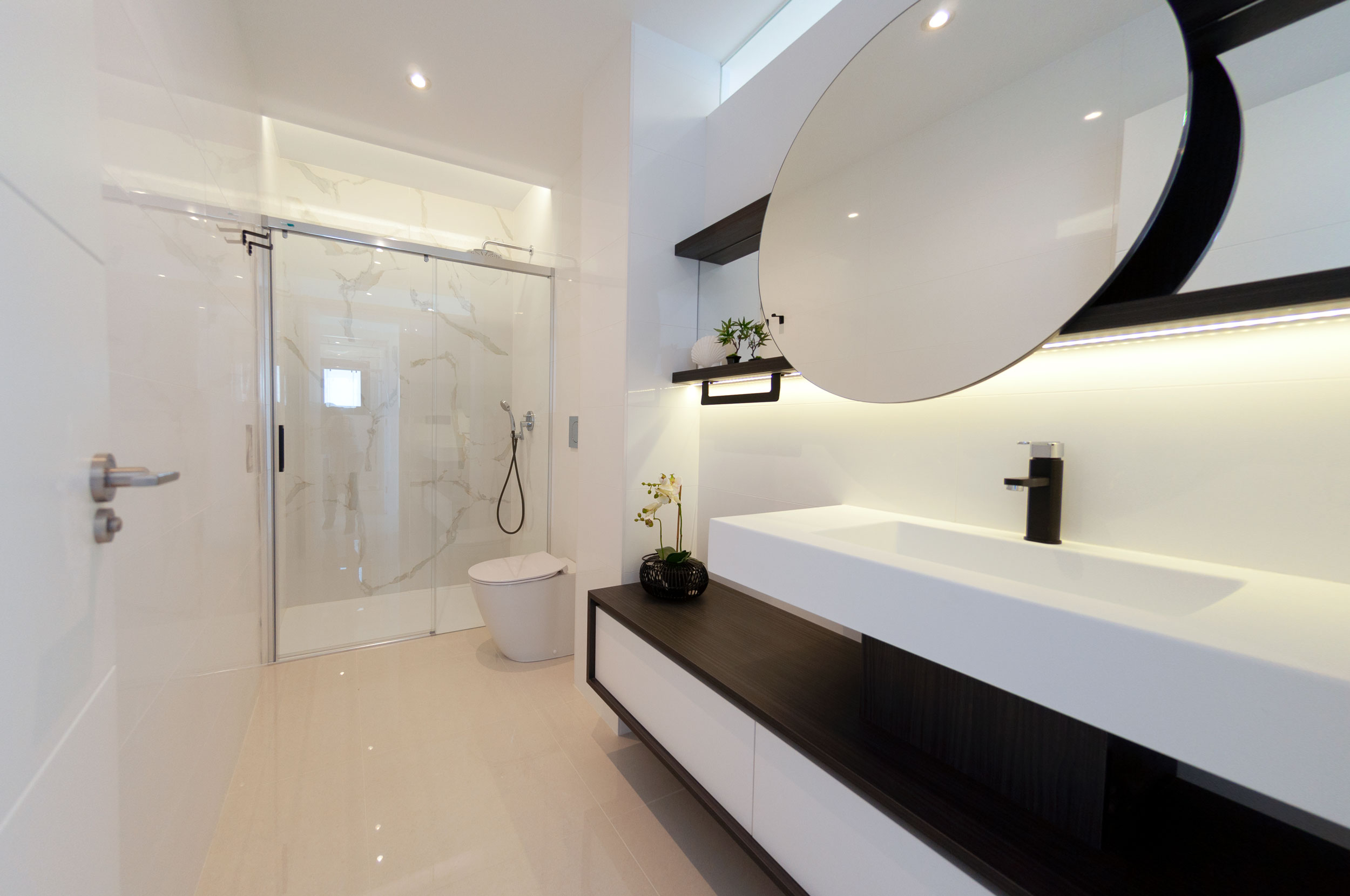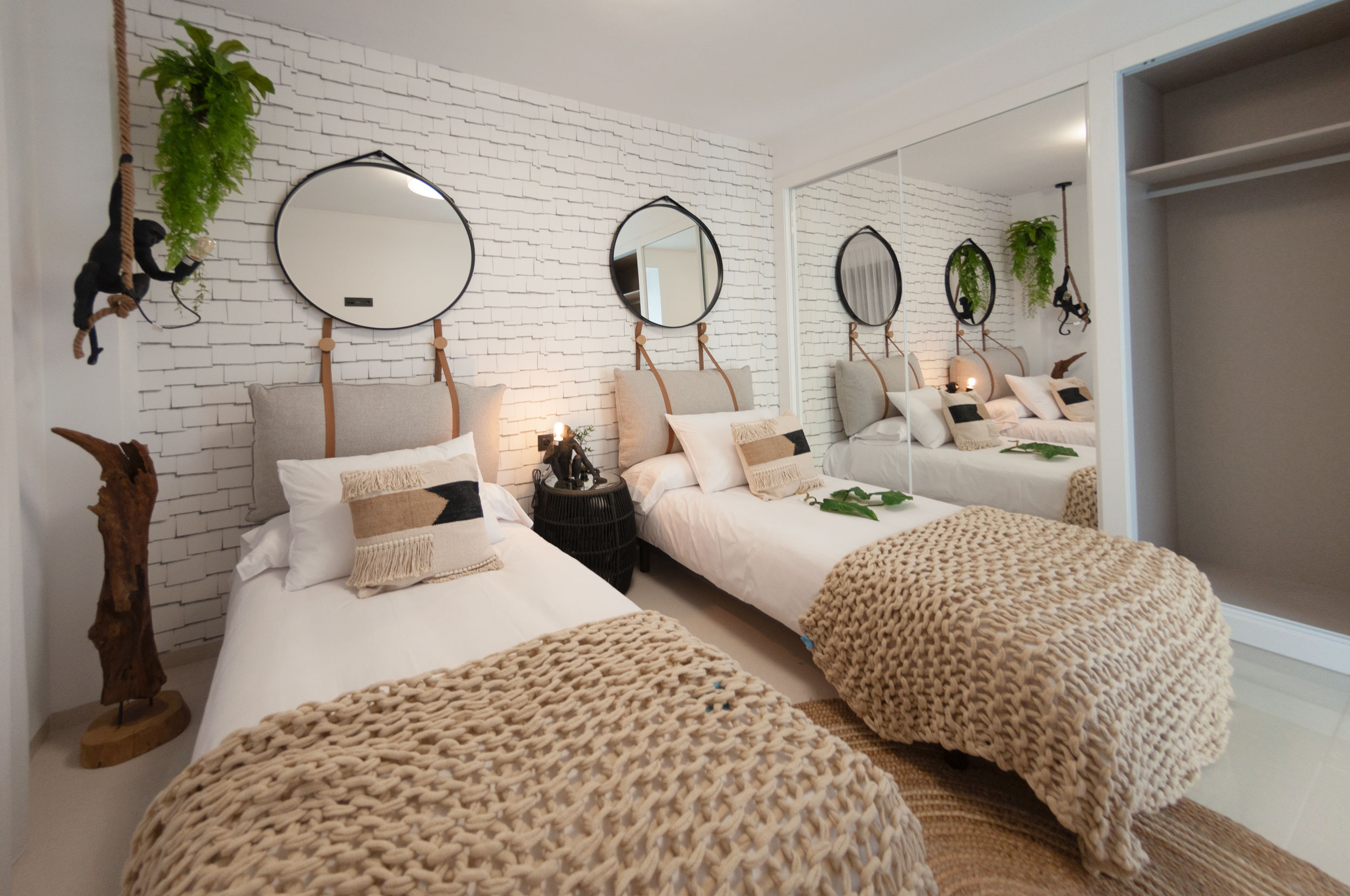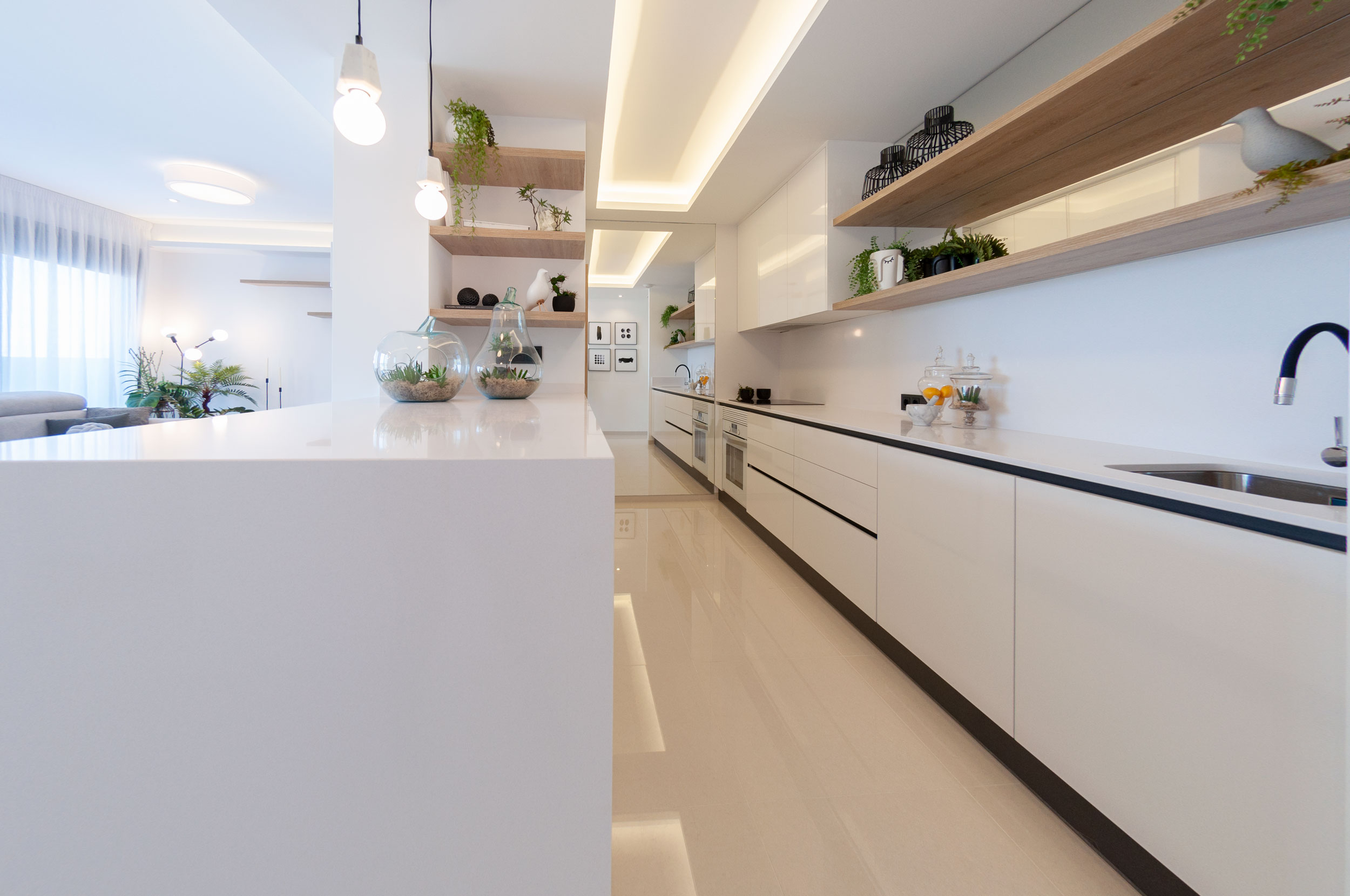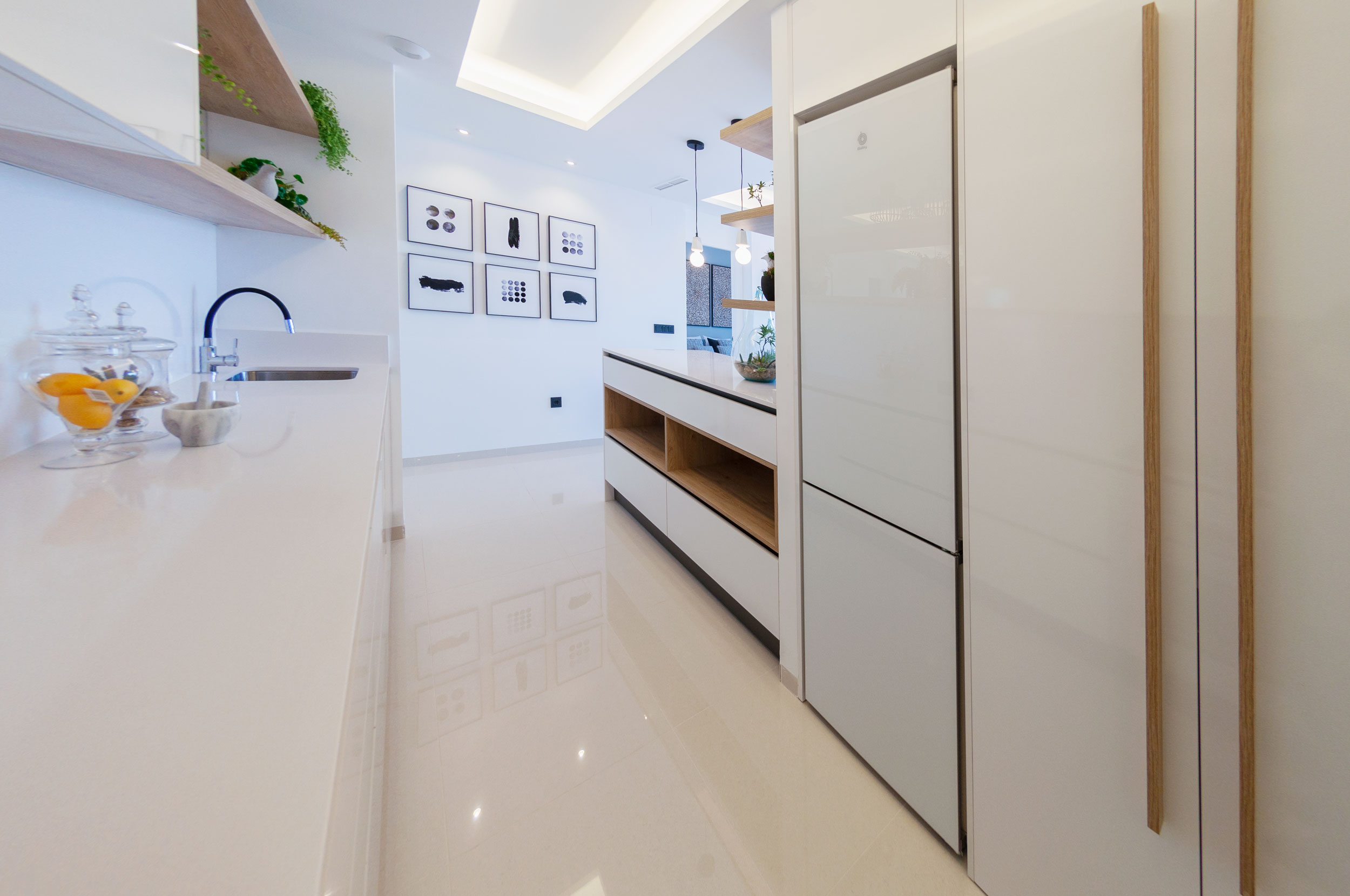 Die Häuser werden mit den höchsten Qualitäten geliefert: Die Küche hat eine Edelstahlspüle, eine Silestone-Arbeitsplatte, einen integrierten Dunstabzug und schwarze Armaturen. Die Bäder sind mit Fußbodenheizung, kompletten Möbeln und schwarzen Armaturen ausgestattet. Die Einbauschränke in den Zimmern sind mit Textilholz verkleidet und verfügen über Spiegel sowie eine Vorinstallation für LED-Beleuchtung. Das Haus hat eine Vorinstallation für eine Klimaanlage.