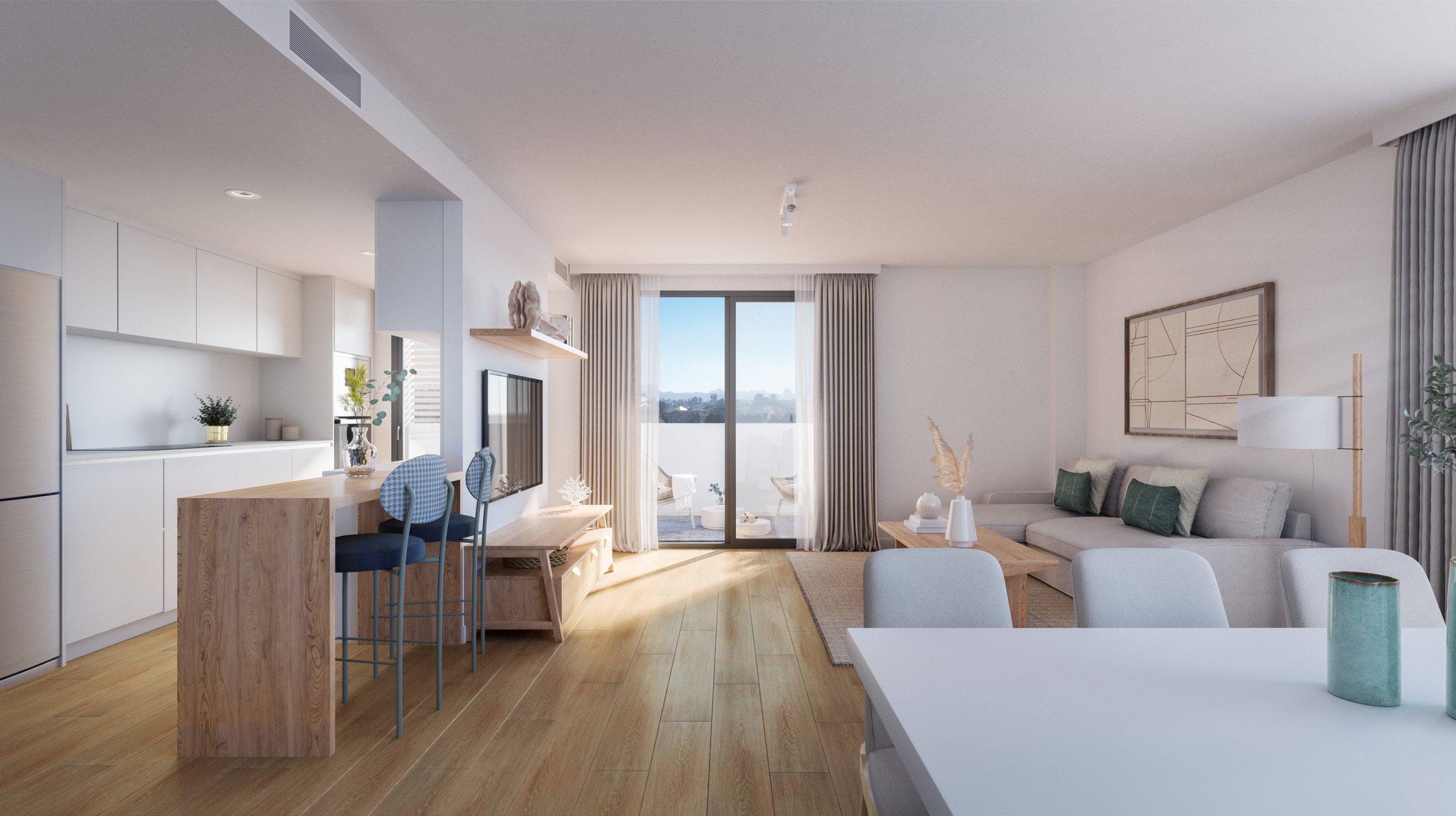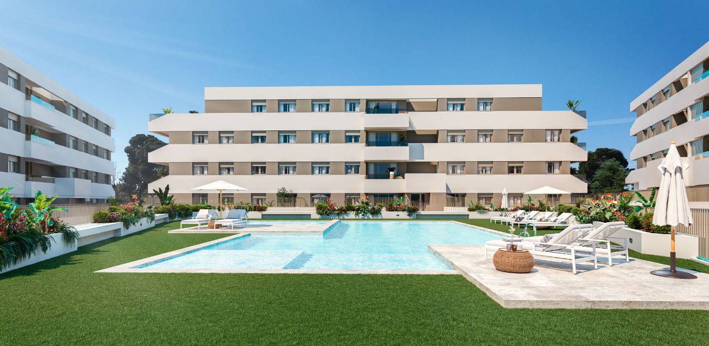 Wohnungen mit 1, 2, 3 und 4 Schlafzimmern mit 1, 2, 3 und 4 Bädern. Alle notwendigen Optionen für jeden Kunden und seine Anforderungen. Alle Häuser verfügen über Außenbereiche, entweder einen Garten im Erdgeschoss oder Terrassen in den oberen Etagen. Sie verfügen außerdem über ein bis zwei Parkplätze und einen Abstellraum.