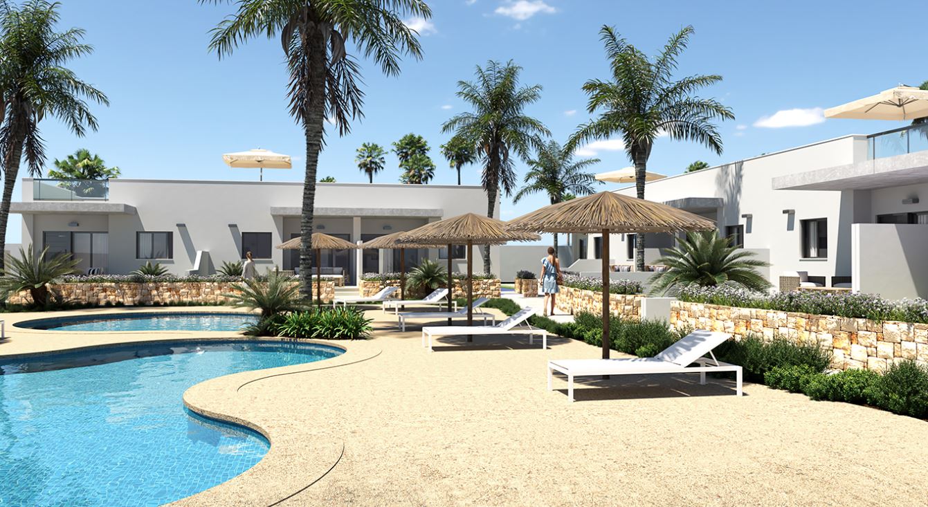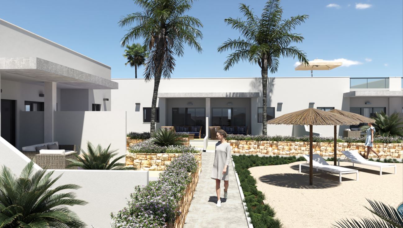 Die Häuser haben 2 und 3 Schlafzimmer, 2 Bäder, Küche, Wohn-Esszimmer und große Terrassen, sowie ein Solarium. Die Küche wird komplett mit Ober- und Unterschränken, Silestone-Arbeitsplatte, Dunstabzugshaube, Cerankochfeld und Elektrobackofen geliefert.