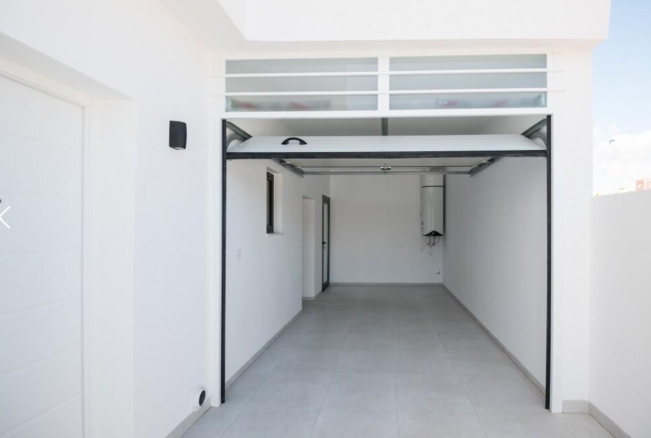 Das Haus hat eine Garage mit elektrischem Tor.