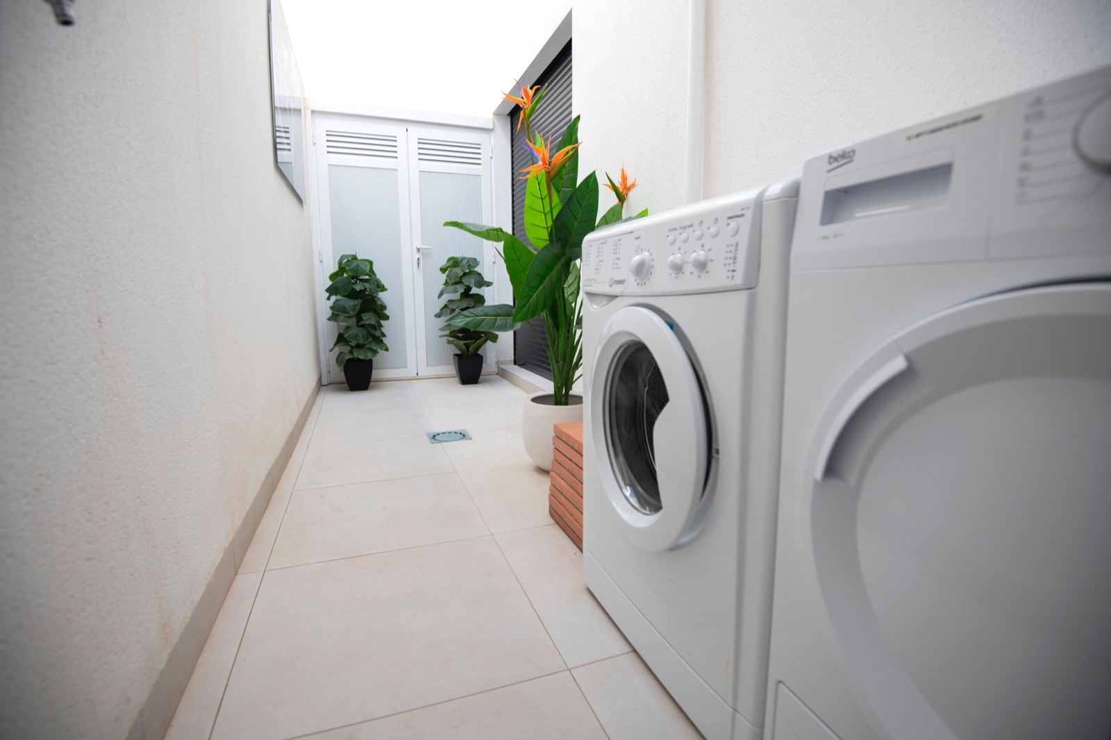 Überdachte Terrasse für Waschmaschine/Trockner (und mit Waschmaschine und Trockner im Lieferumfang)