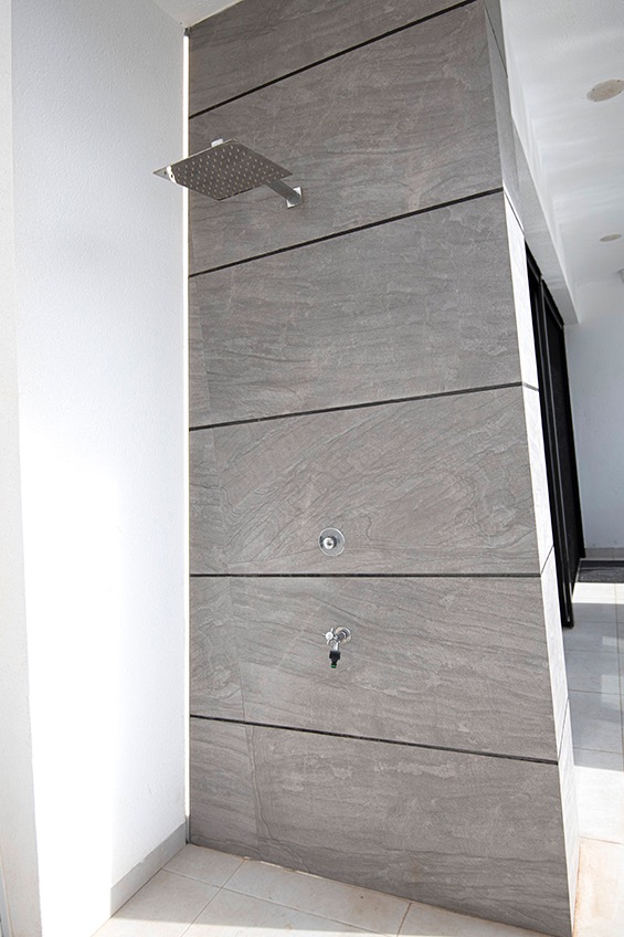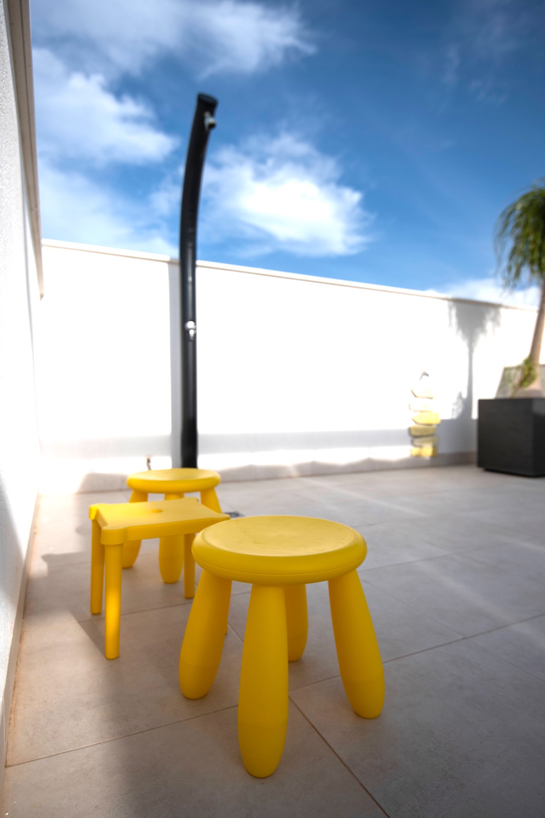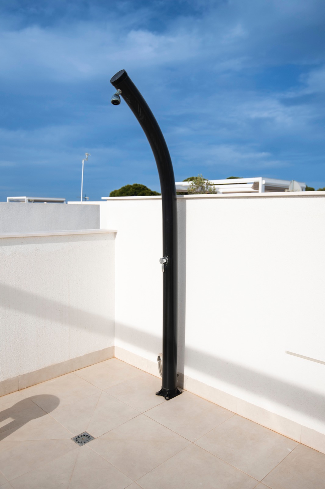 Regendusche im Freien unten auf der Terrasse und oben auf dem Dach