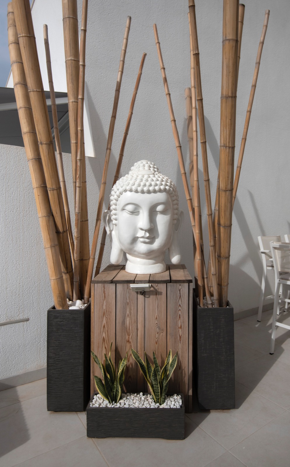 Marmorverkleidung an den Wänden, um Flecken durch Regen zu vermeiden