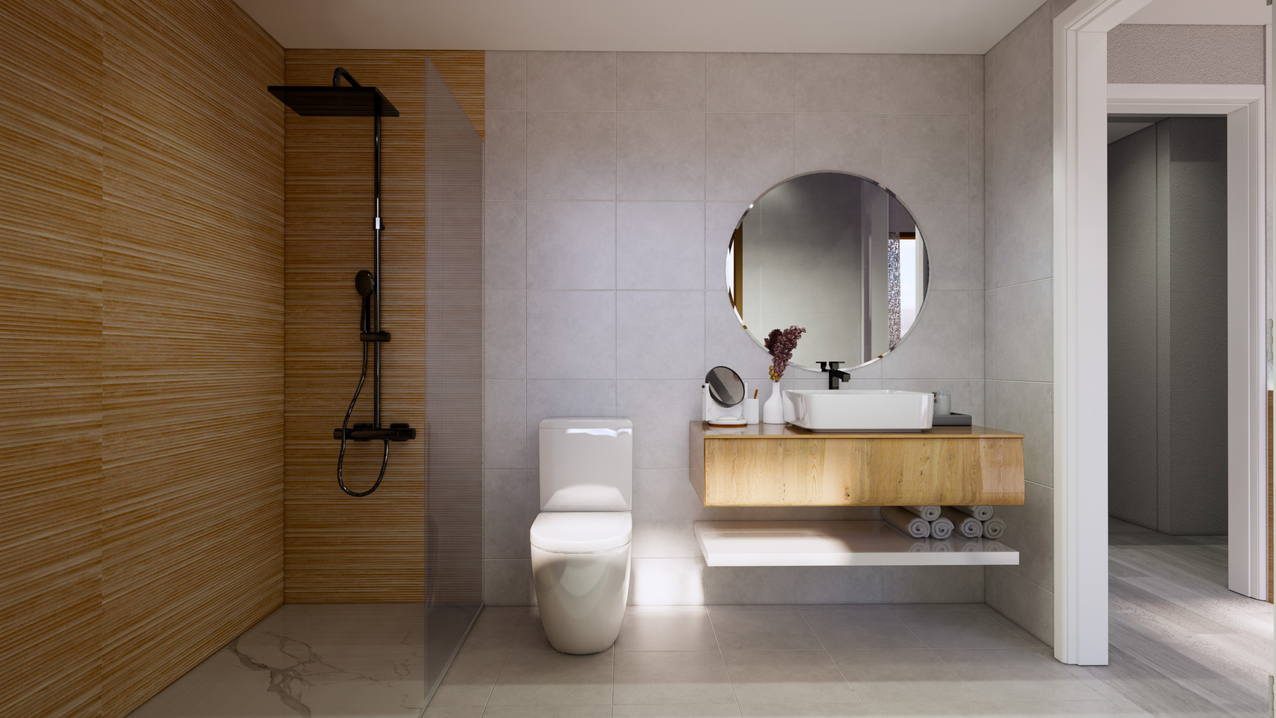 Im zweiten Stock befinden sich zwei Schlafzimmer und zwei Bäder (eines der Schlafzimmer ist en suite). Alle Schlafzimmer haben Einbauschränke mit Schubladen und Regalen und die Bäder sind mit Möbeln, Spiegeln und einer Duschwand ausgestattet. Diese Etage verfügt über zwei Terrassen, von denen eine groß genug und mit einer Sommerküche ausgestattet ist.