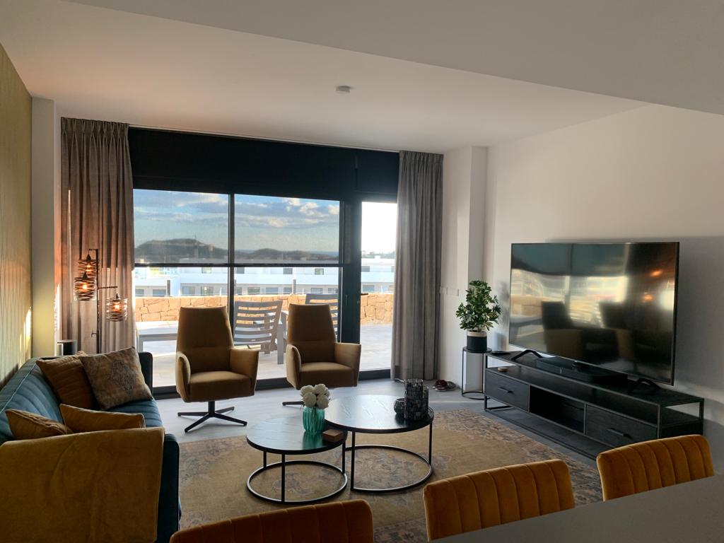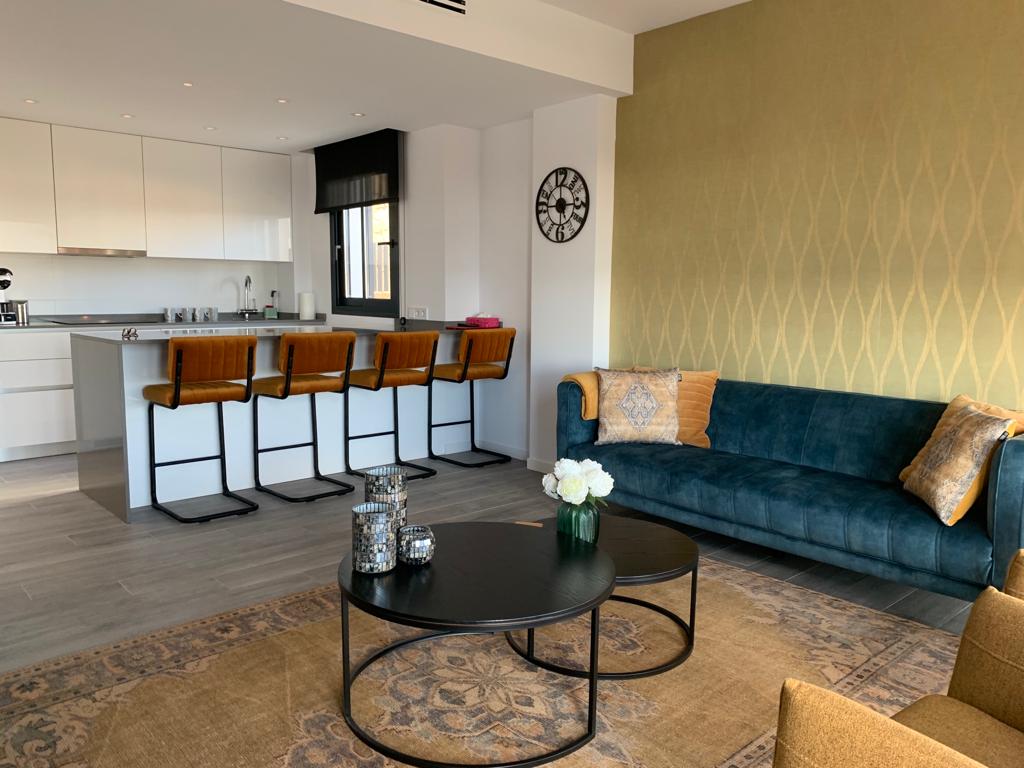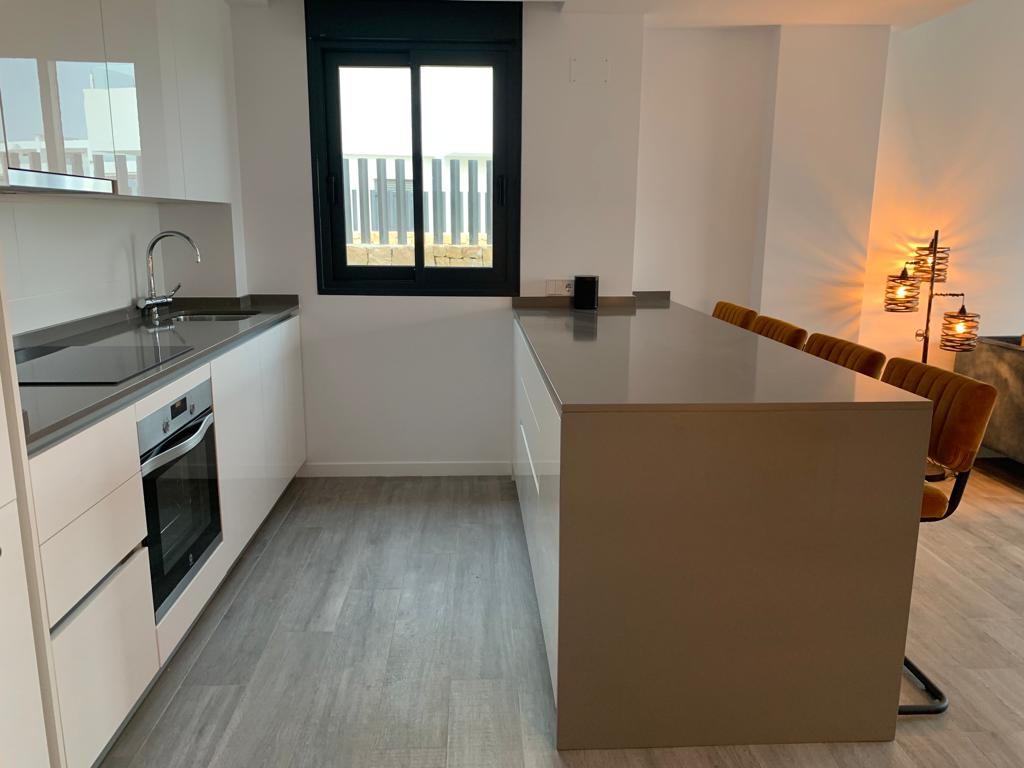Es verfügt über zwei Doppelschlafzimmer mit Einbauschränken und zwei voll ausgestattete Bäder. Auch voll ausgestattete funktionale Design-Küche mit dem Wohnzimmer verbunden, von dem Sie die große Terrasse zugreifen können.