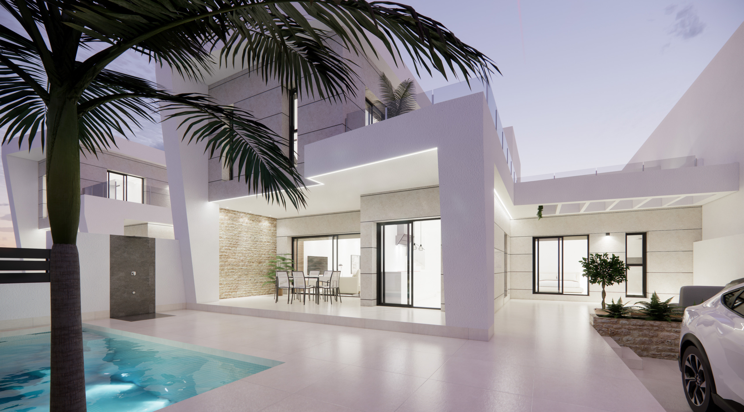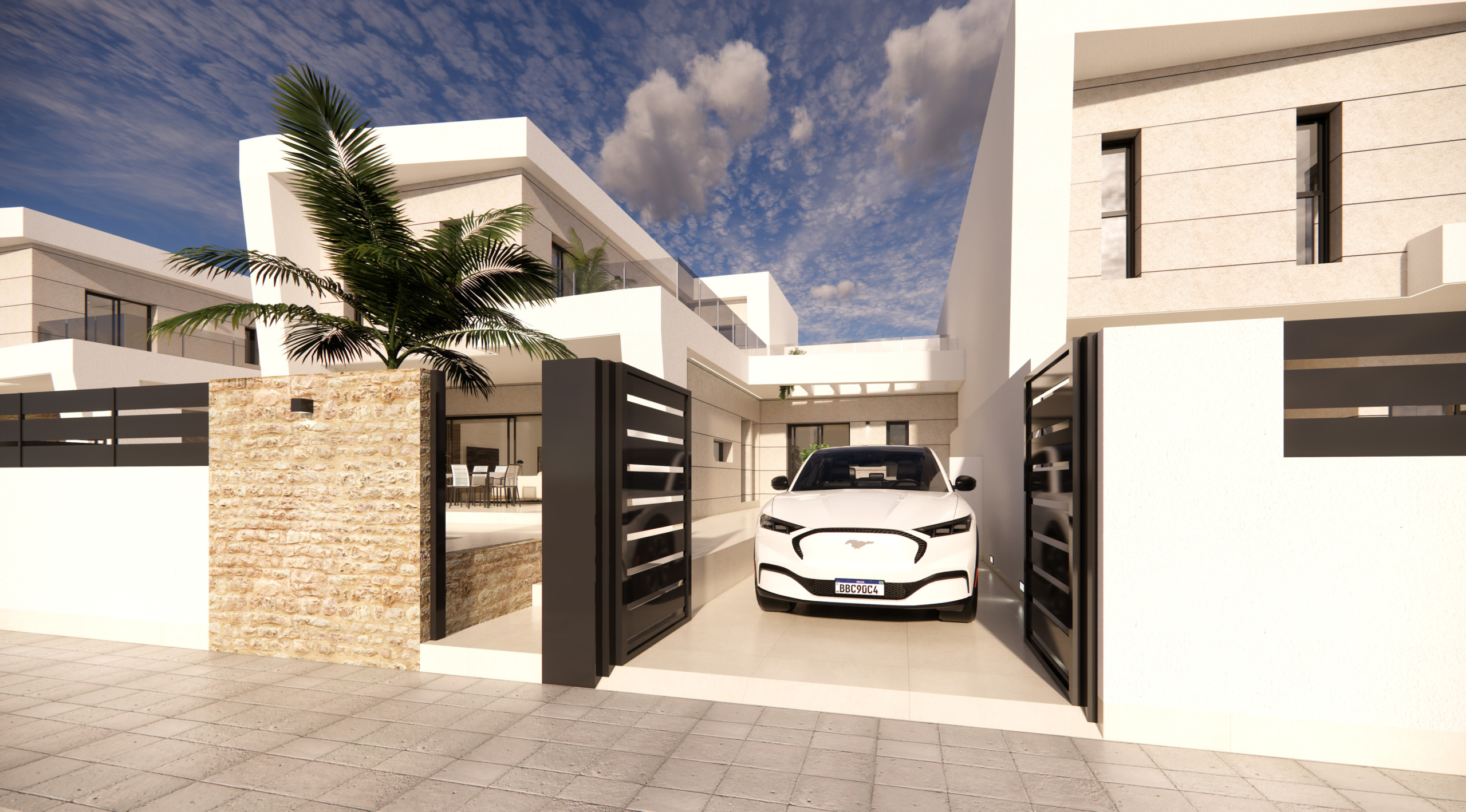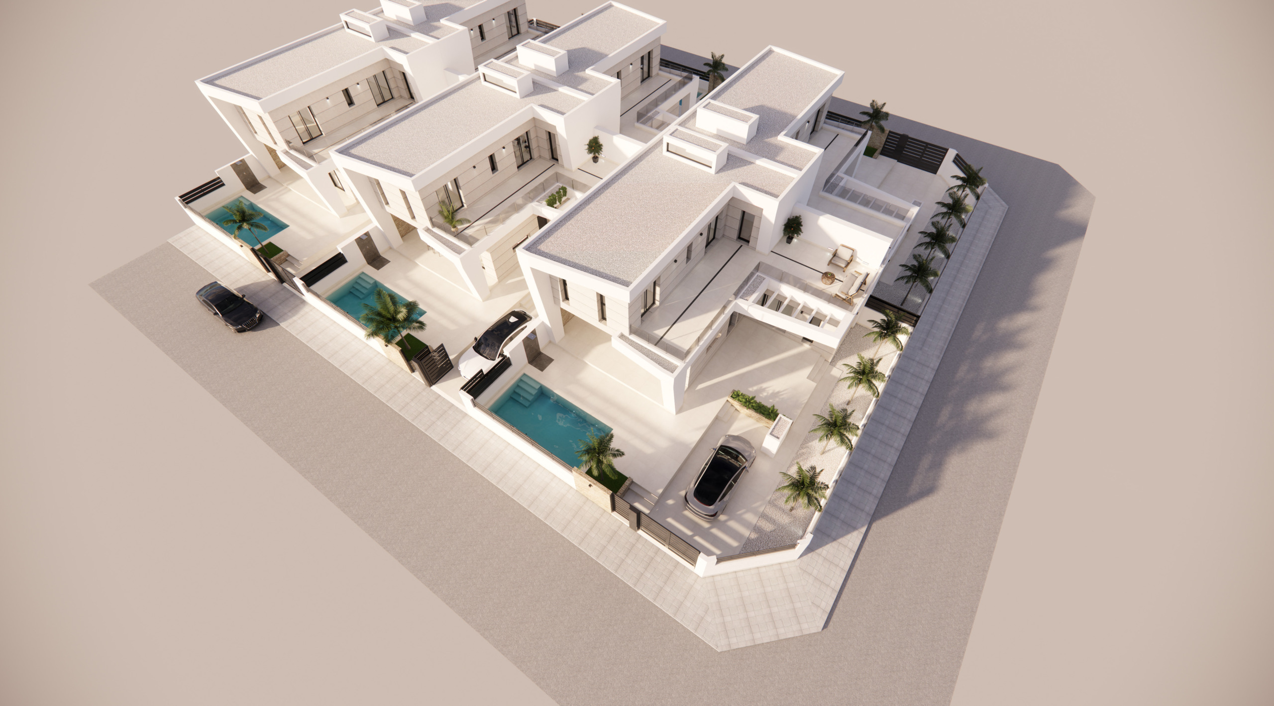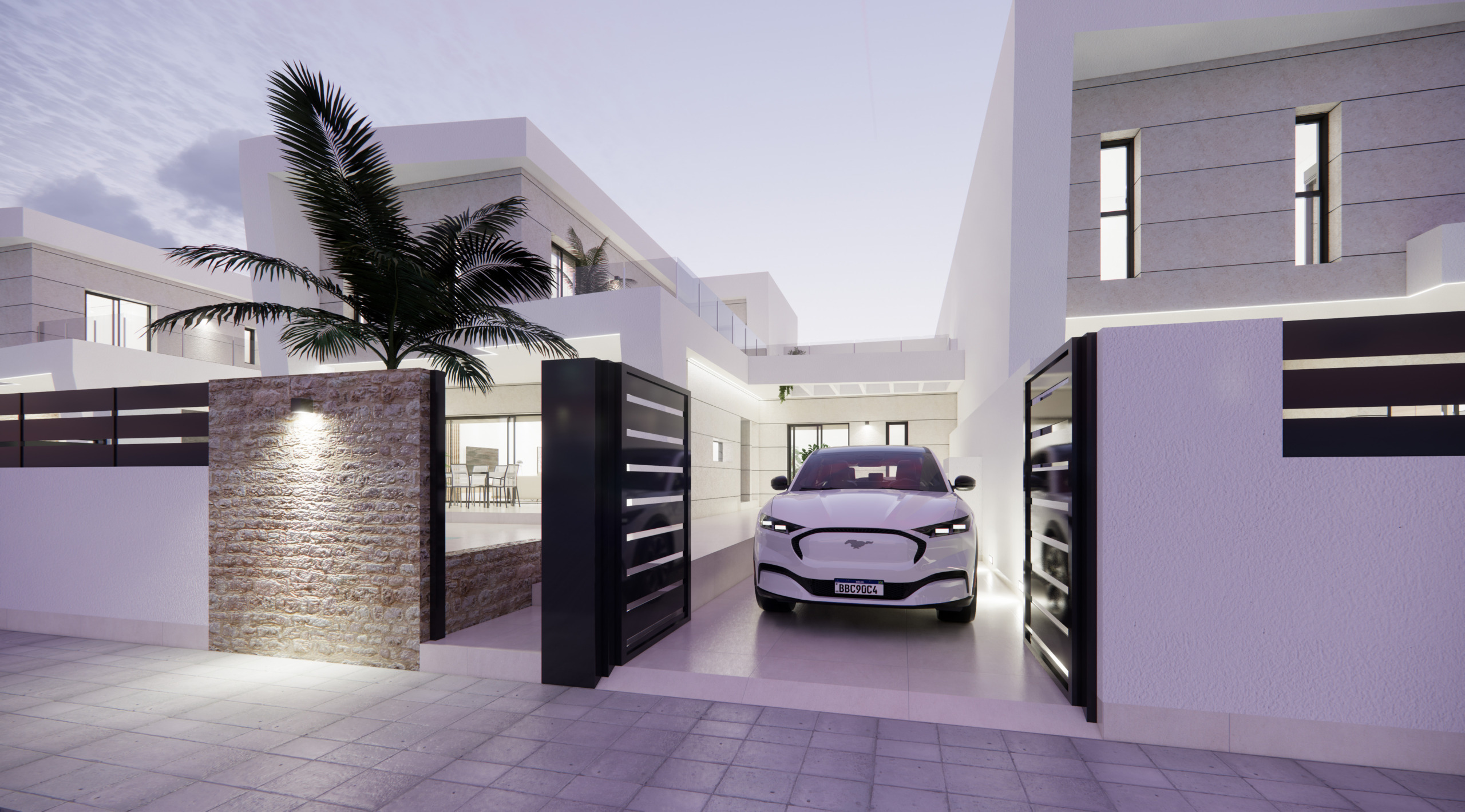 Die Villen verfügen über LED-Beleuchtung im ganzen Haus und doppelt verglaste Fenster für die Sicherheit, aerothermisches System für Warmwasser, Vorinstallation der Klimaanlage und automatische Öffnung der Eingangstür.