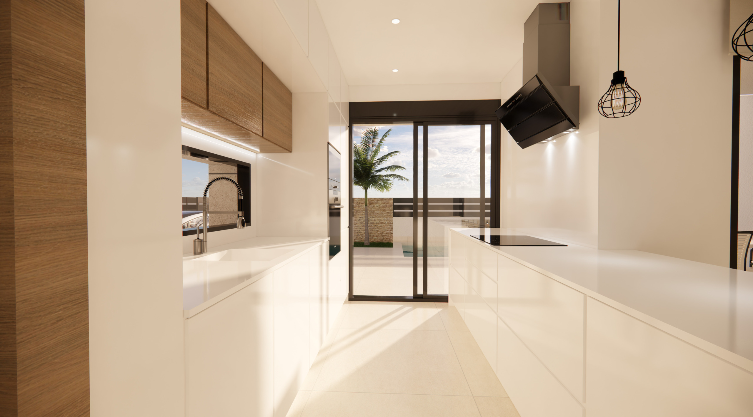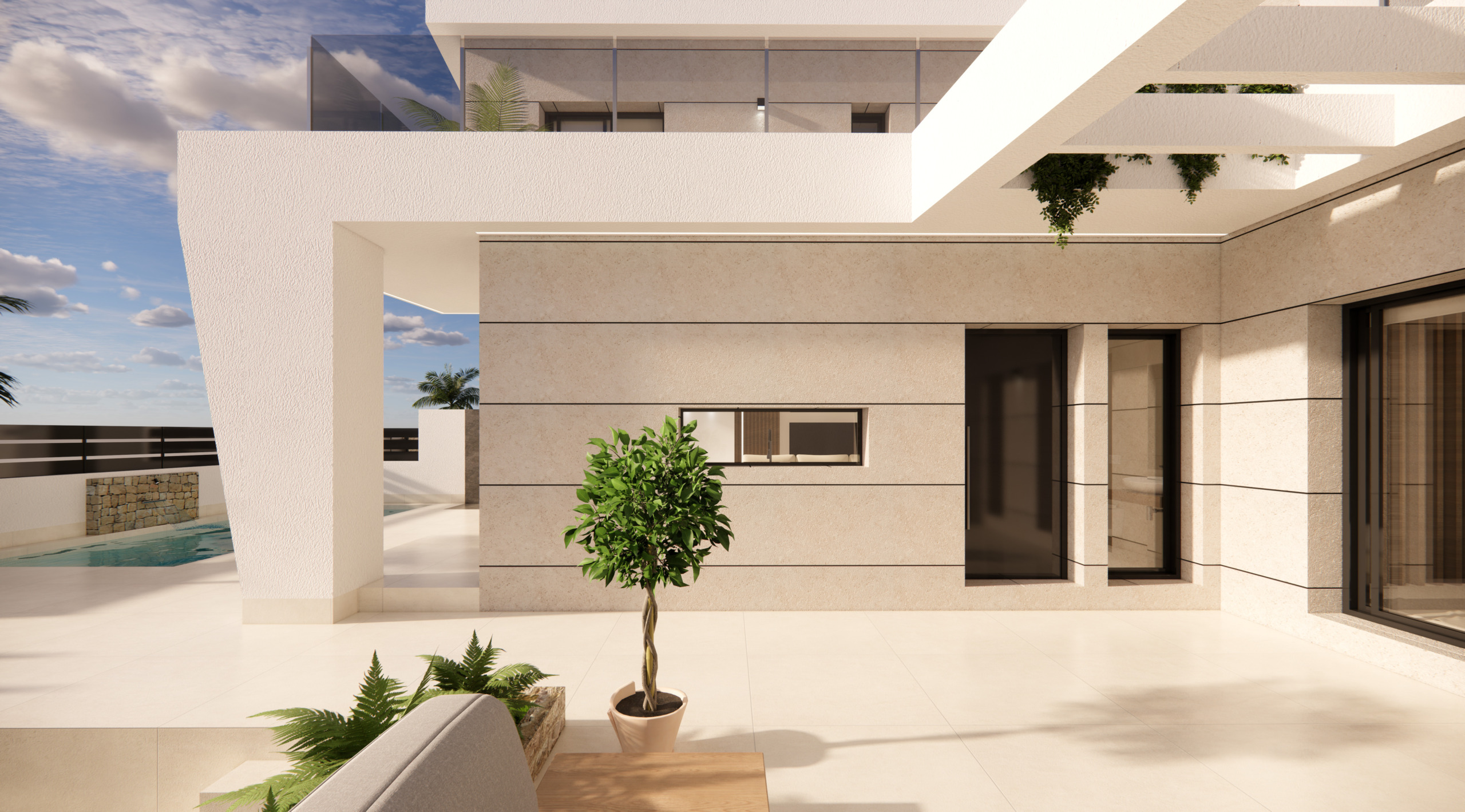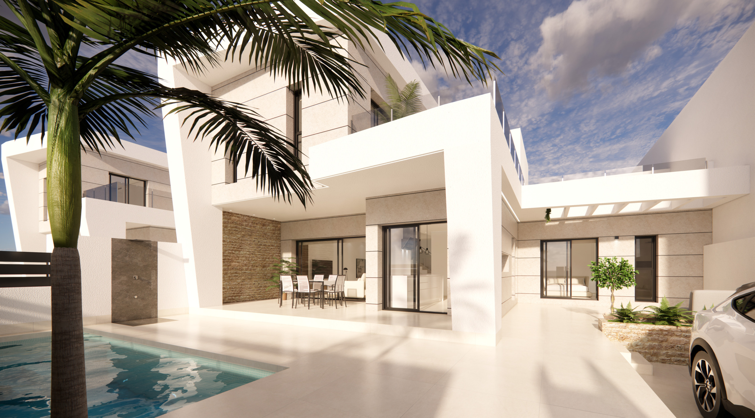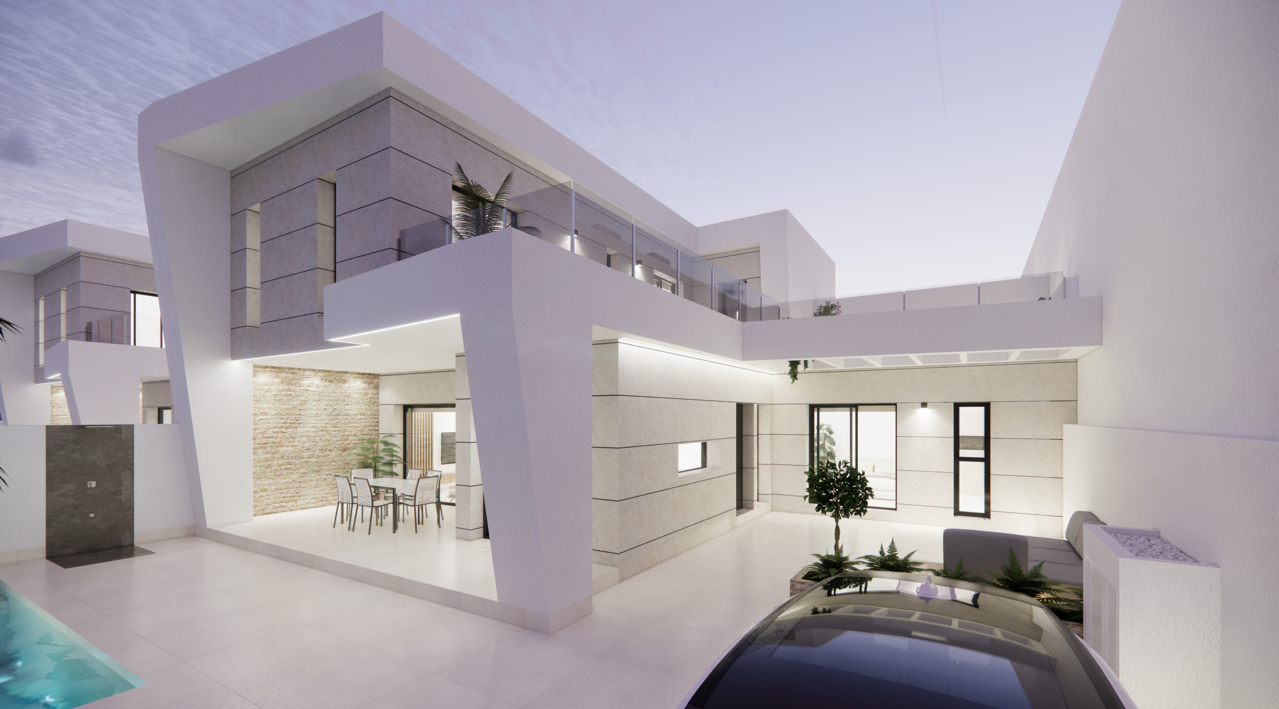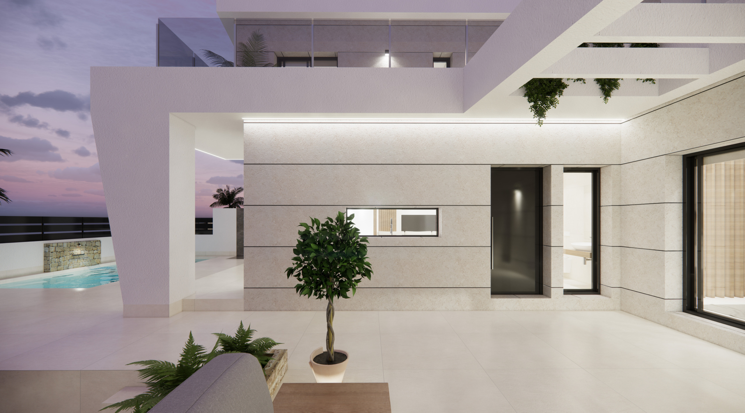 Die Villen verfügen über LED-Beleuchtung im ganzen Haus und doppelt verglaste Fenster für die Sicherheit, aerothermisches System für Warmwasser, Vorinstallation der Klimaanlage und automatische Öffnung der Eingangstür.