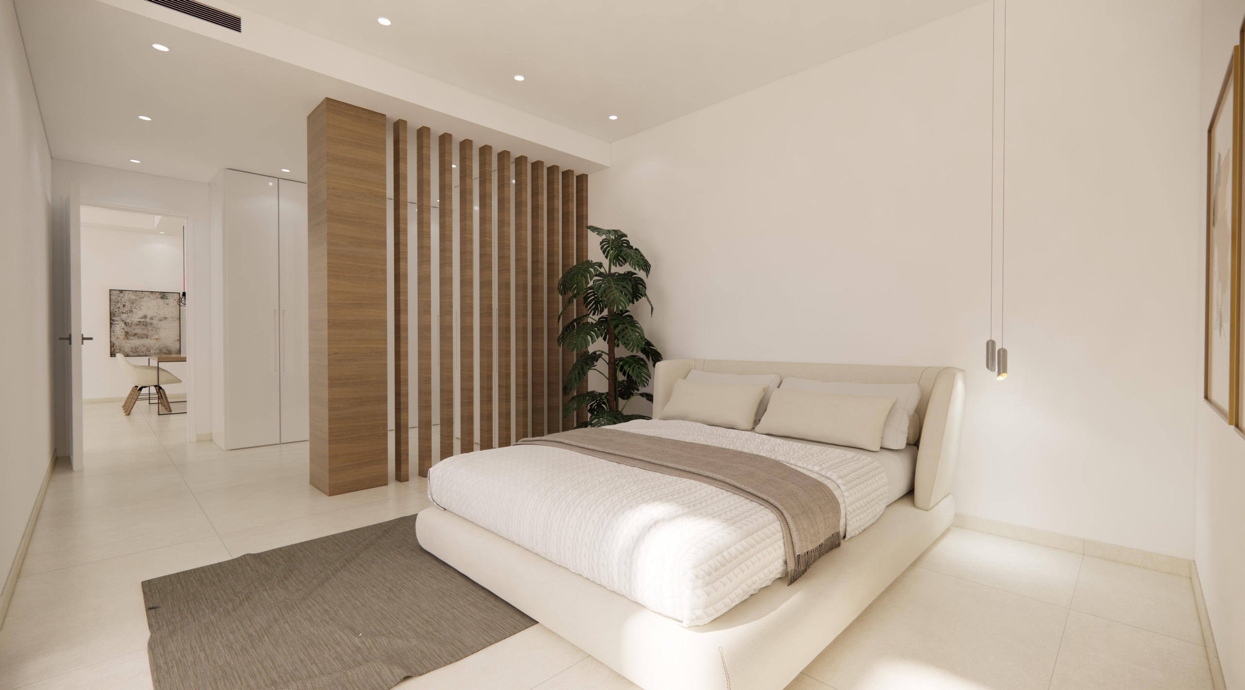 Die Schlafzimmer sind geräumig und hell, die Schränke und Ankleideräume sind maßgeschneidert. Die Badezimmer sind komplett mit Waschbecken, Schrank, Spiegel und Duschkabine mit hochwertigen Materialien und die Dekoration ist im modernen Stil geliefert.