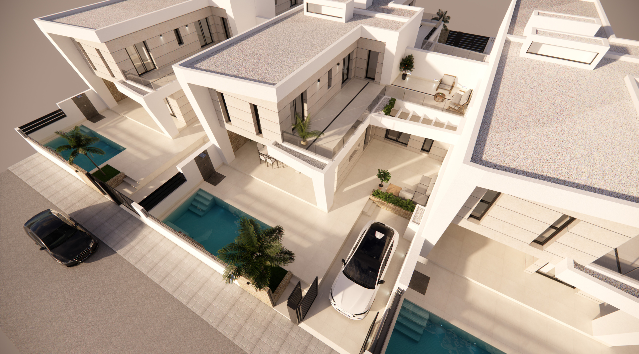 Diese wunderschönen Villen befinden sich in Dolores, Alicante. Sie sind auf zwei Etagen von 3 Schlafzimmer mit 3 Bädern mit privatem Pool und großer Terrasse verteilt.