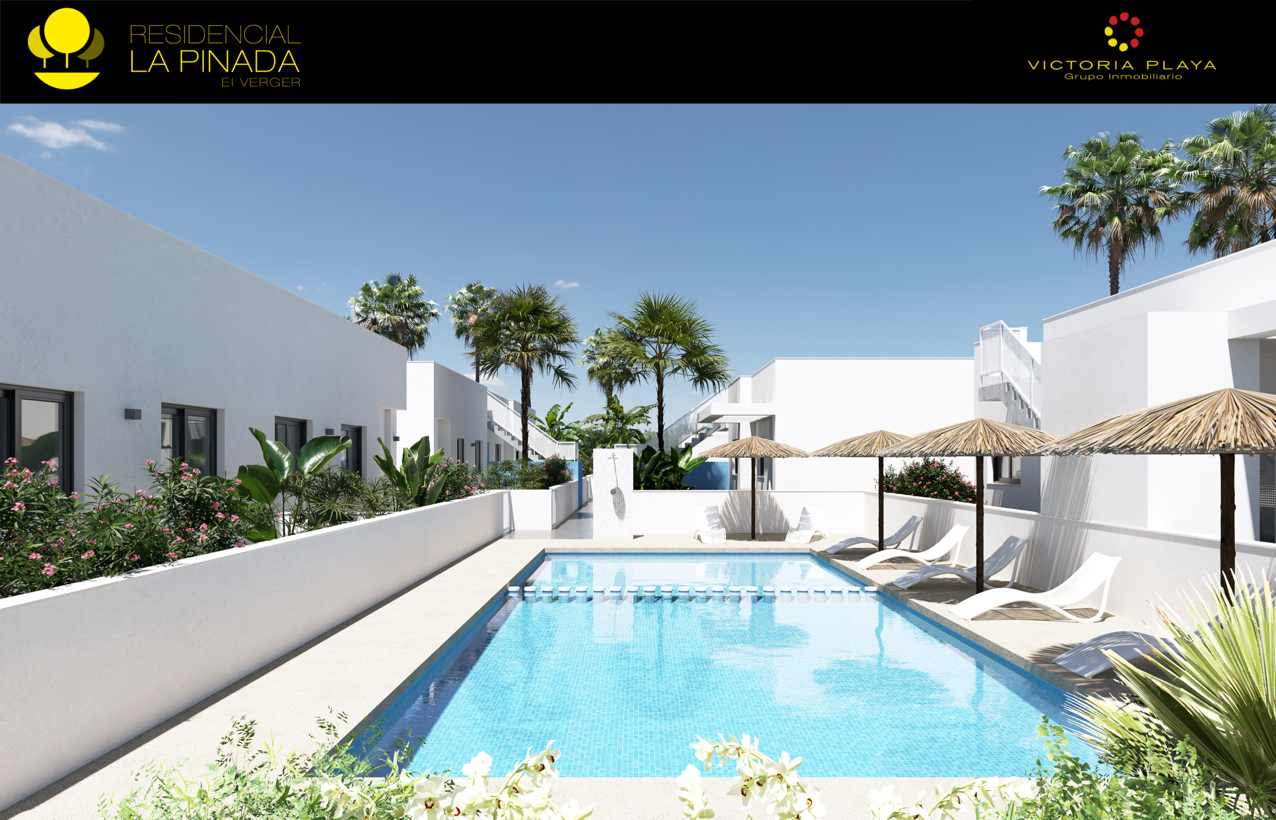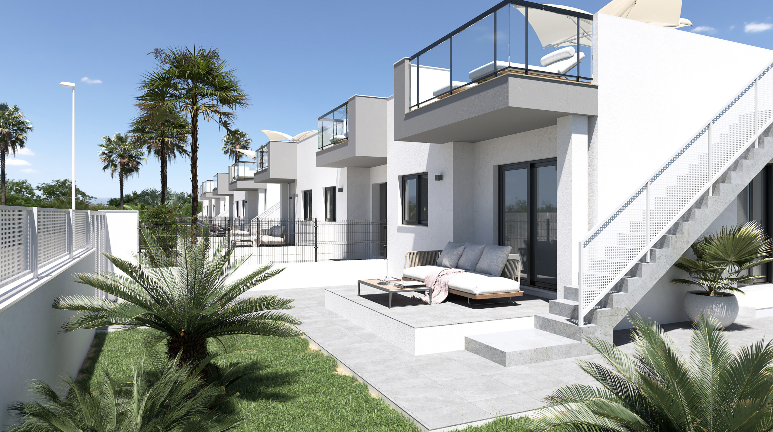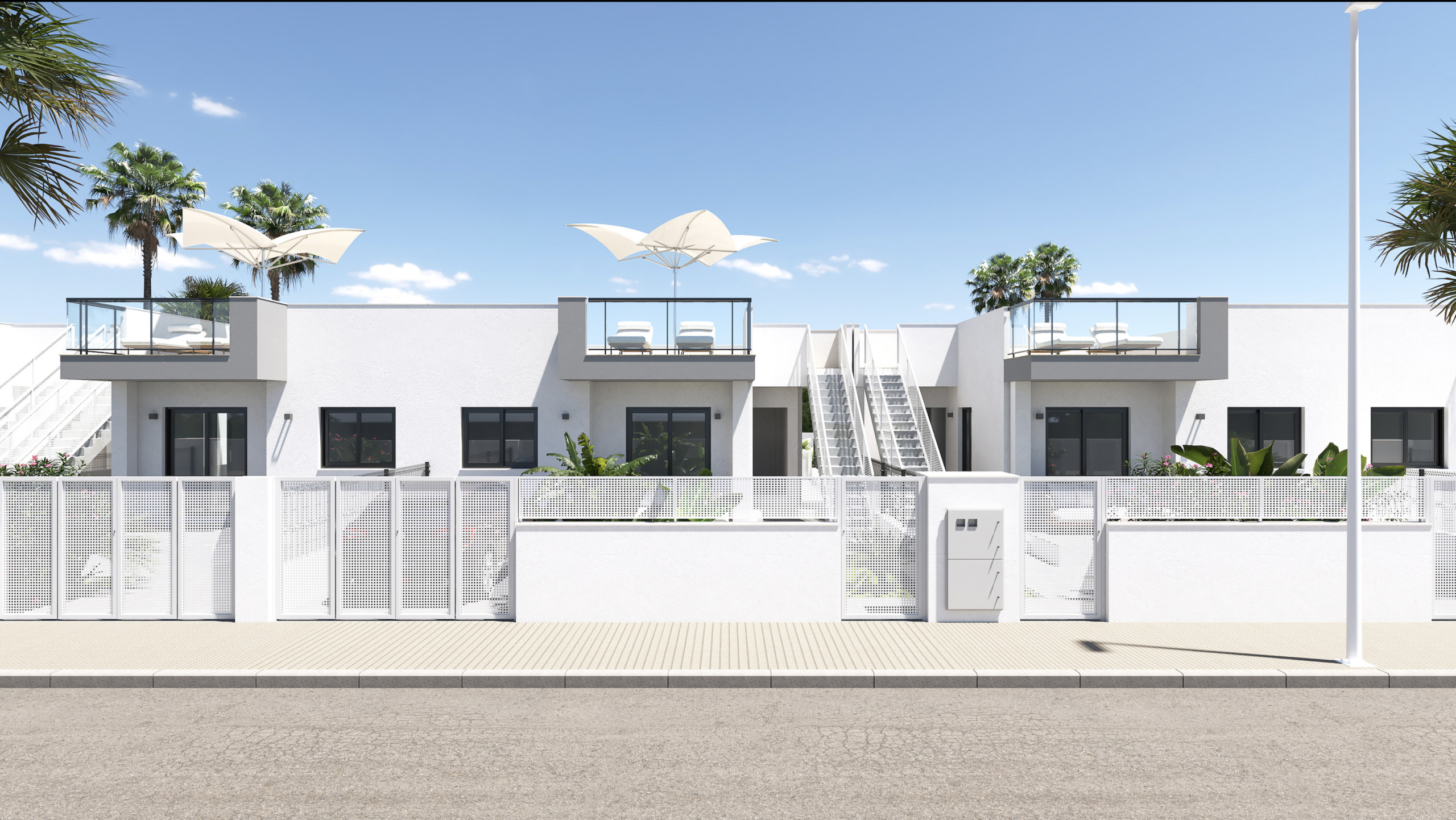 Die Häuser haben 2 oder 3 Schlafzimmer und 2 Bäder in einer bewachten Gemeinschaft mit Gemeinschaftspool und privater Sonnenterrasse.
